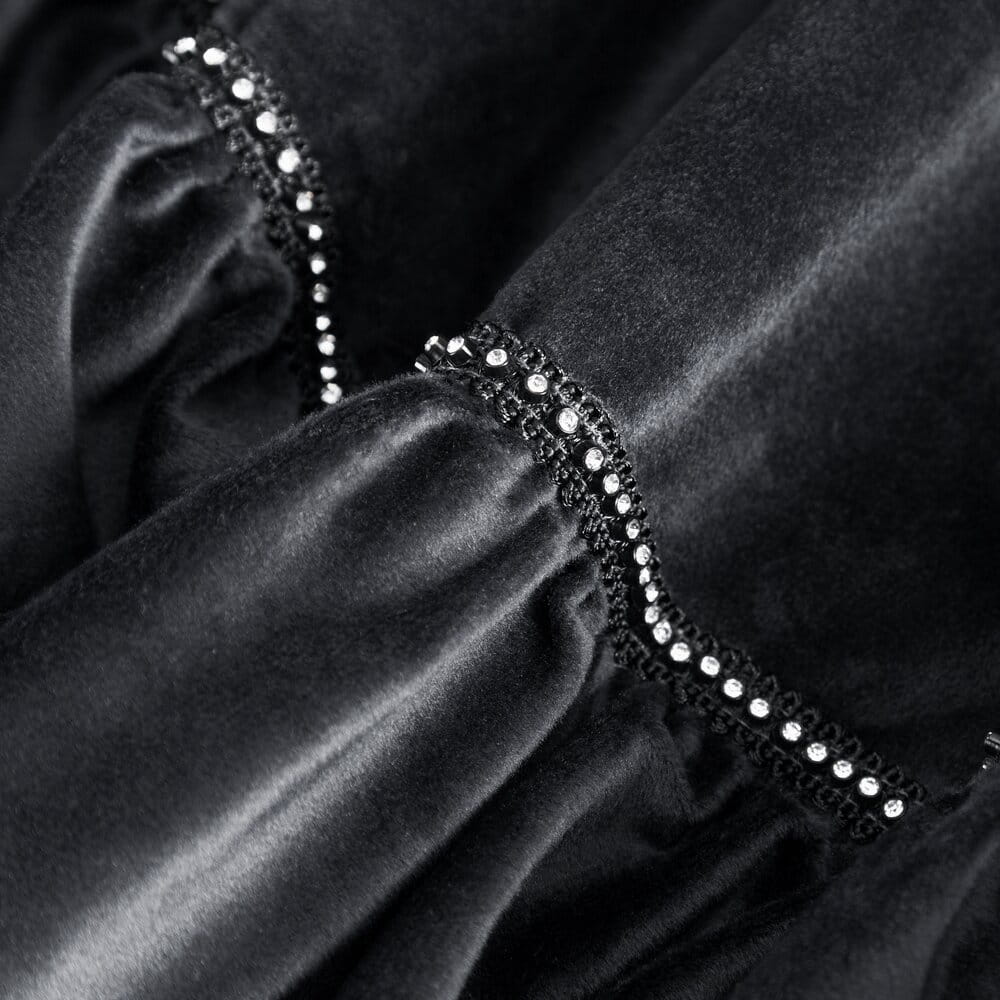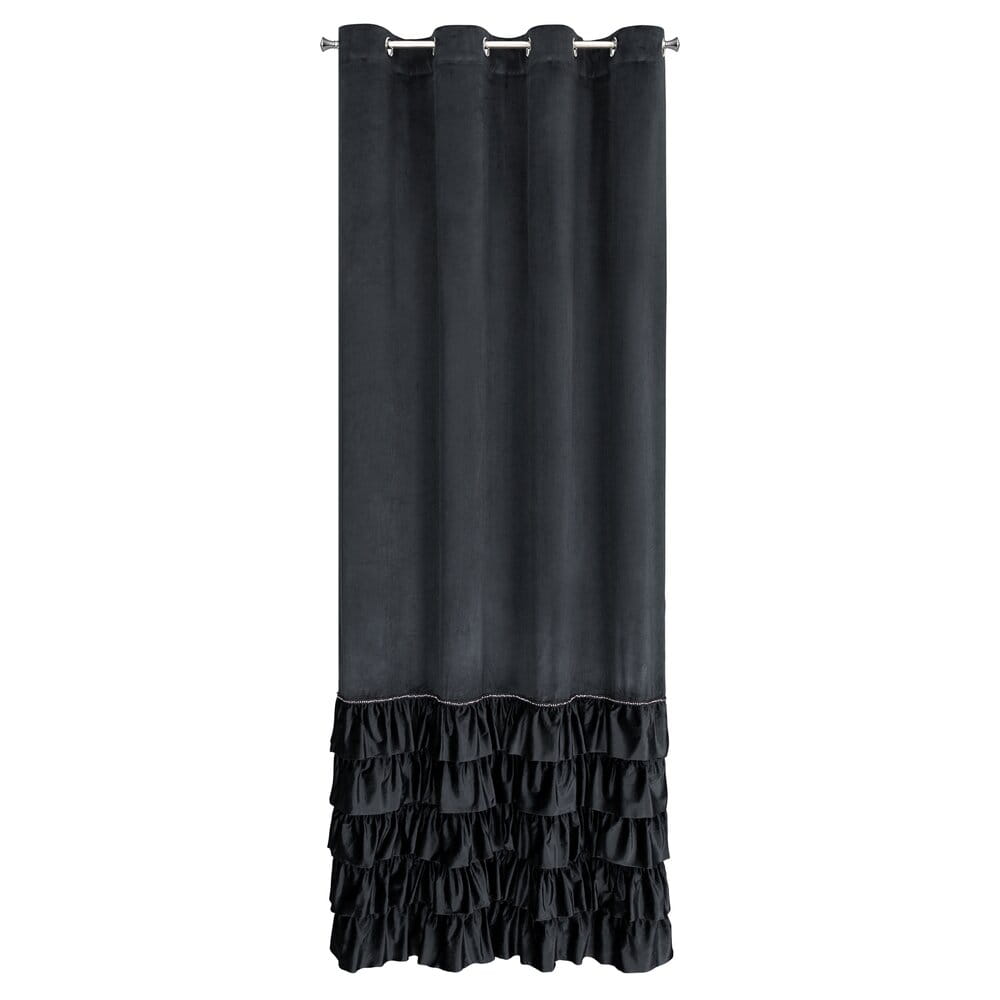 Zasłona gotowa welwetowa z falbanami i ozdobnymi cyrkoniami szerokość: 140 cm, długość: 250 cm, kolor: czarny, Gramatura: 200 GSM, Skład: 100% poliester