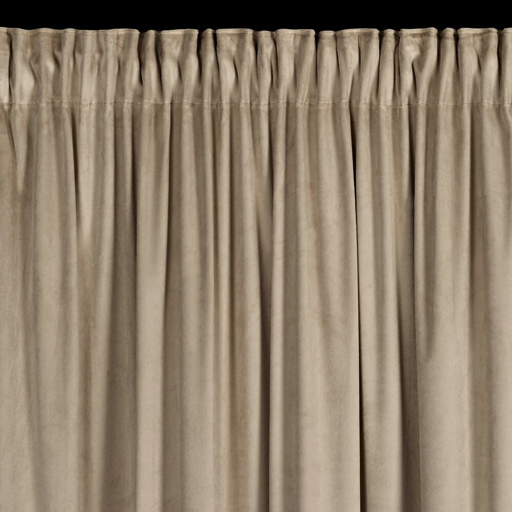 Zasłona gotowa welwetowa z falbanami i ozdobnymi cyrkoniami szerokość: 140 cm, długość: 270 cm, kolor: ciemnobeżowy, Gramatura: 200 GSM, Skład: 100% poliester