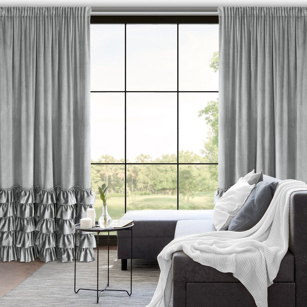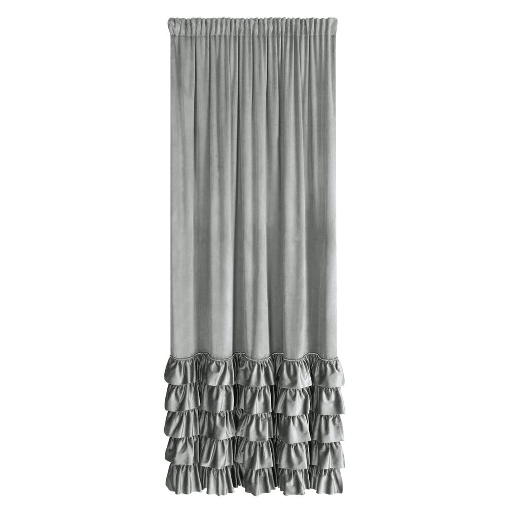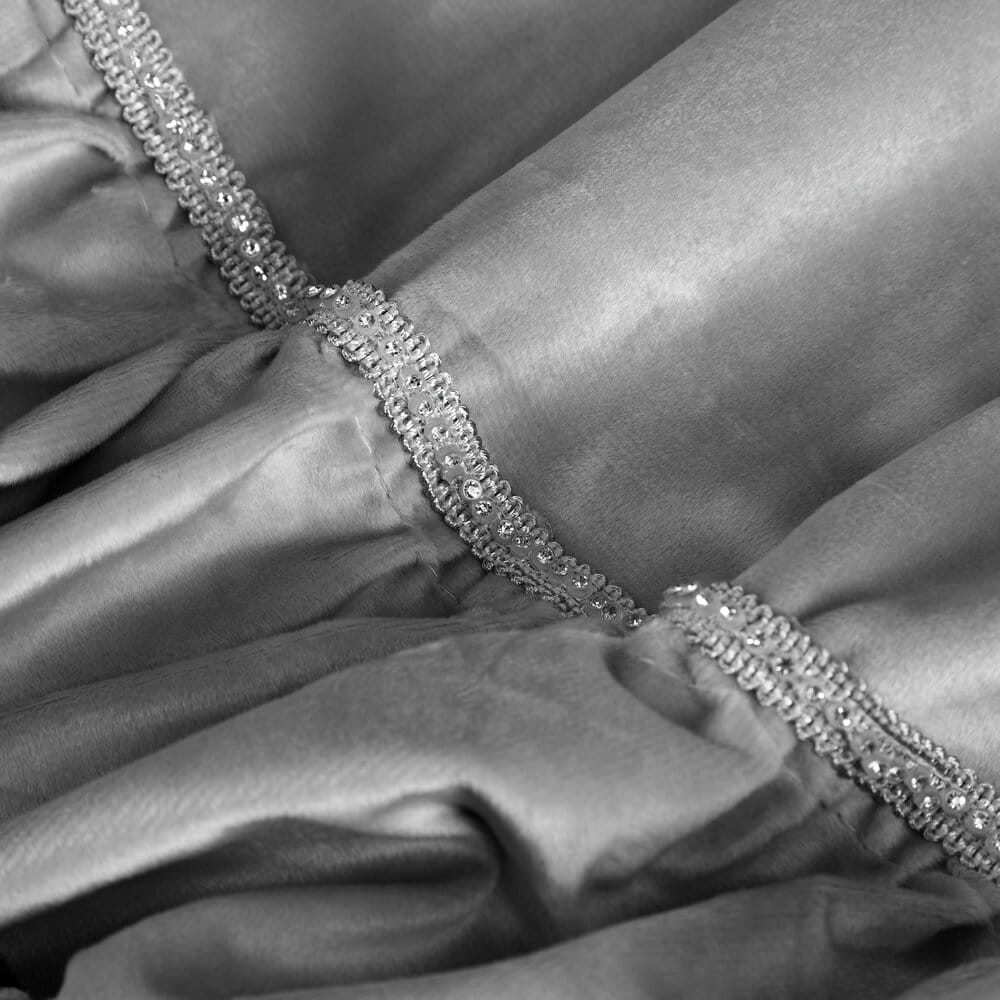 Zasłona gotowa welwetowa z falbanami i ozdobnymi cyrkoniami szerokość: 140 cm, długość: 270 cm, kolor: srebrny, Gramatura: 200 GSM, Skład: 100% poliester