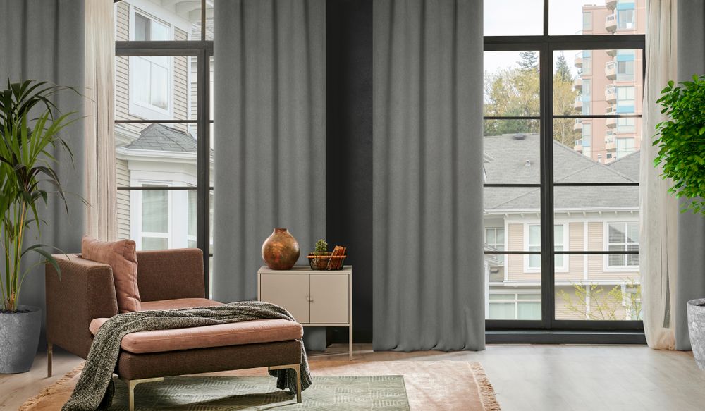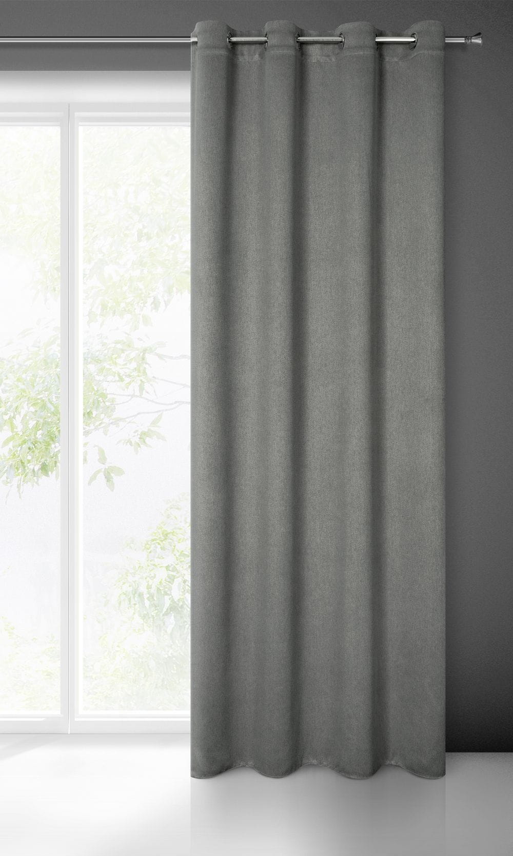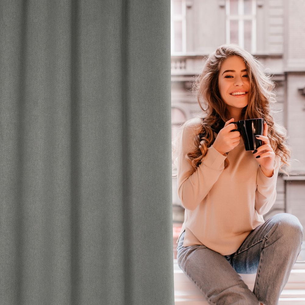 Zasłona zaciemniająca jednokolorowa strukturalna typu blackout szerokość: 140 cm, długość: 250 cm, kolor: popielaty, Gramatura: 340 GSM, Skład: 100% poliester