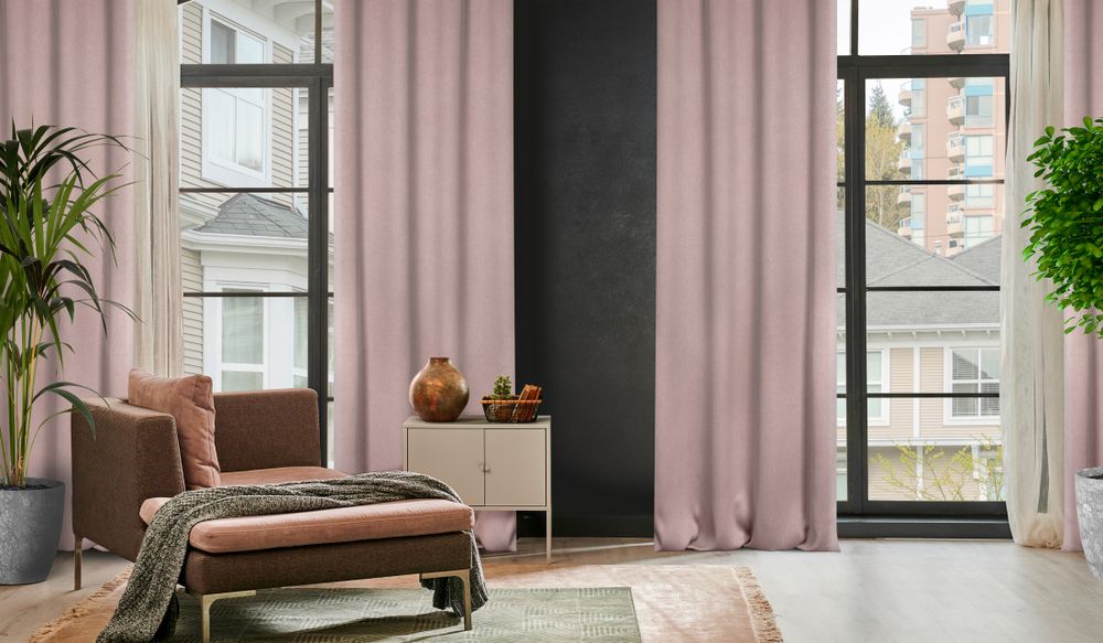 Zasłona zaciemniająca jednokolorowa strukturalna typu blackout szerokość: 140 cm, długość: 250 cm, kolor: pudrowy, Gramatura: 340 GSM, Skład: 100% poliester