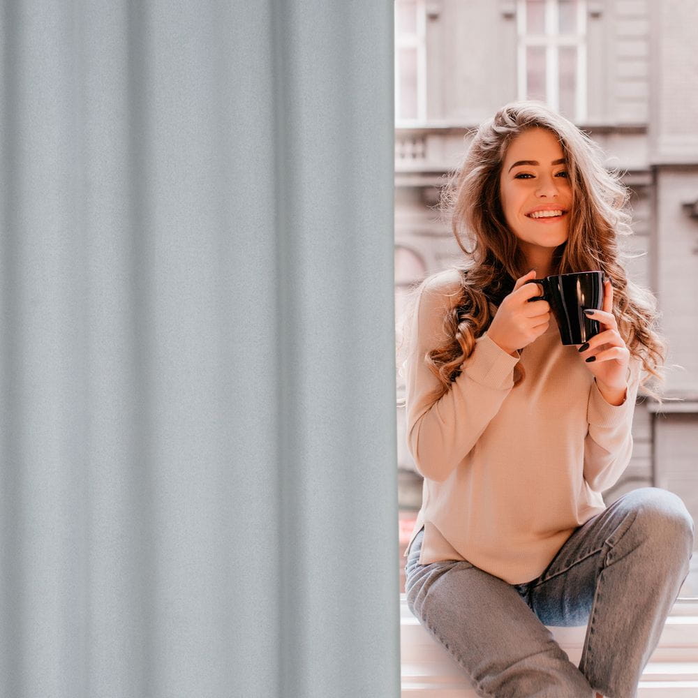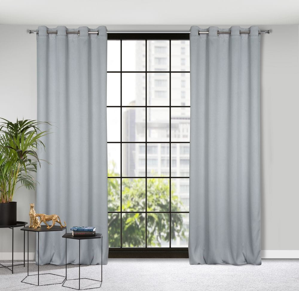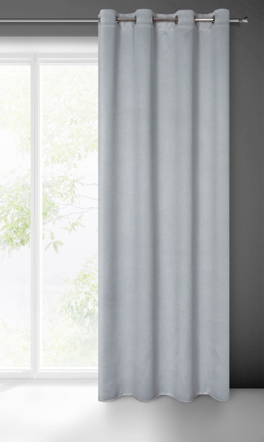 Zasłona zaciemniająca jednokolorowa strukturalna typu blackout szerokość: 140 cm, długość: 250 cm, kolor: szary, Gramatura: 340 GSM, Skład: 100% poliester