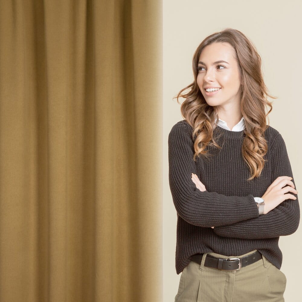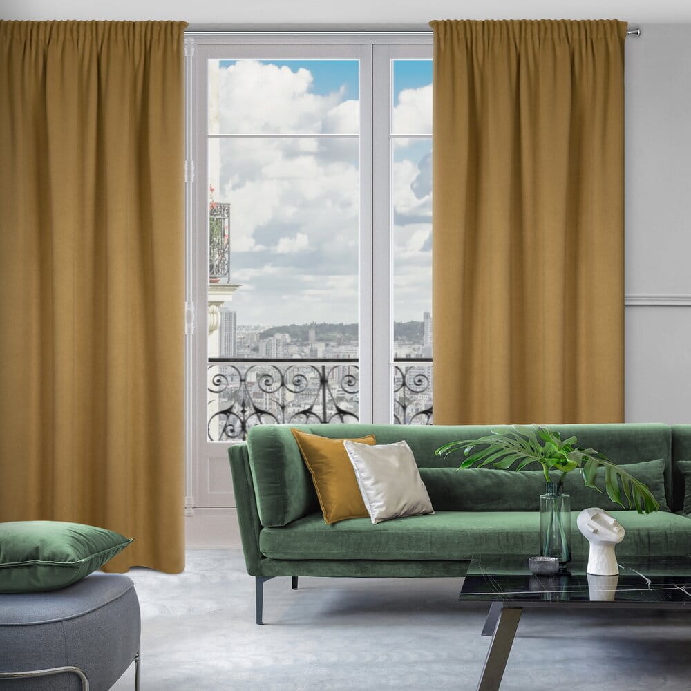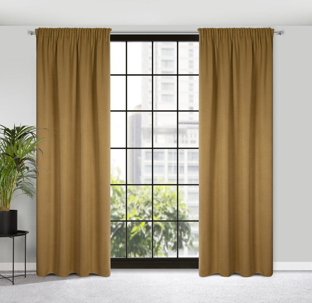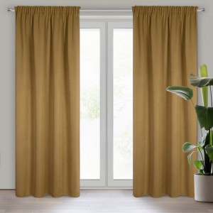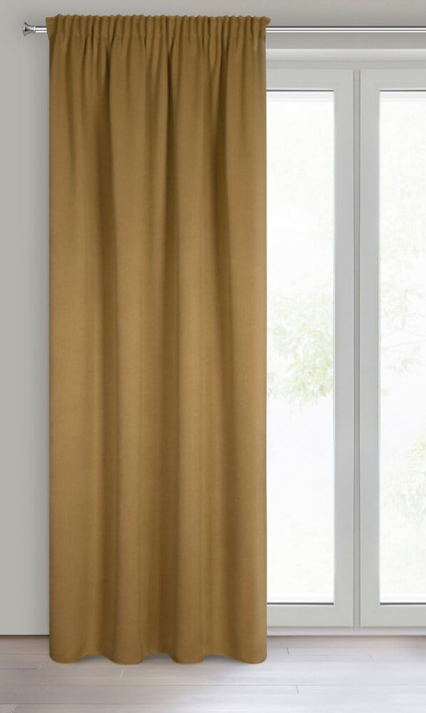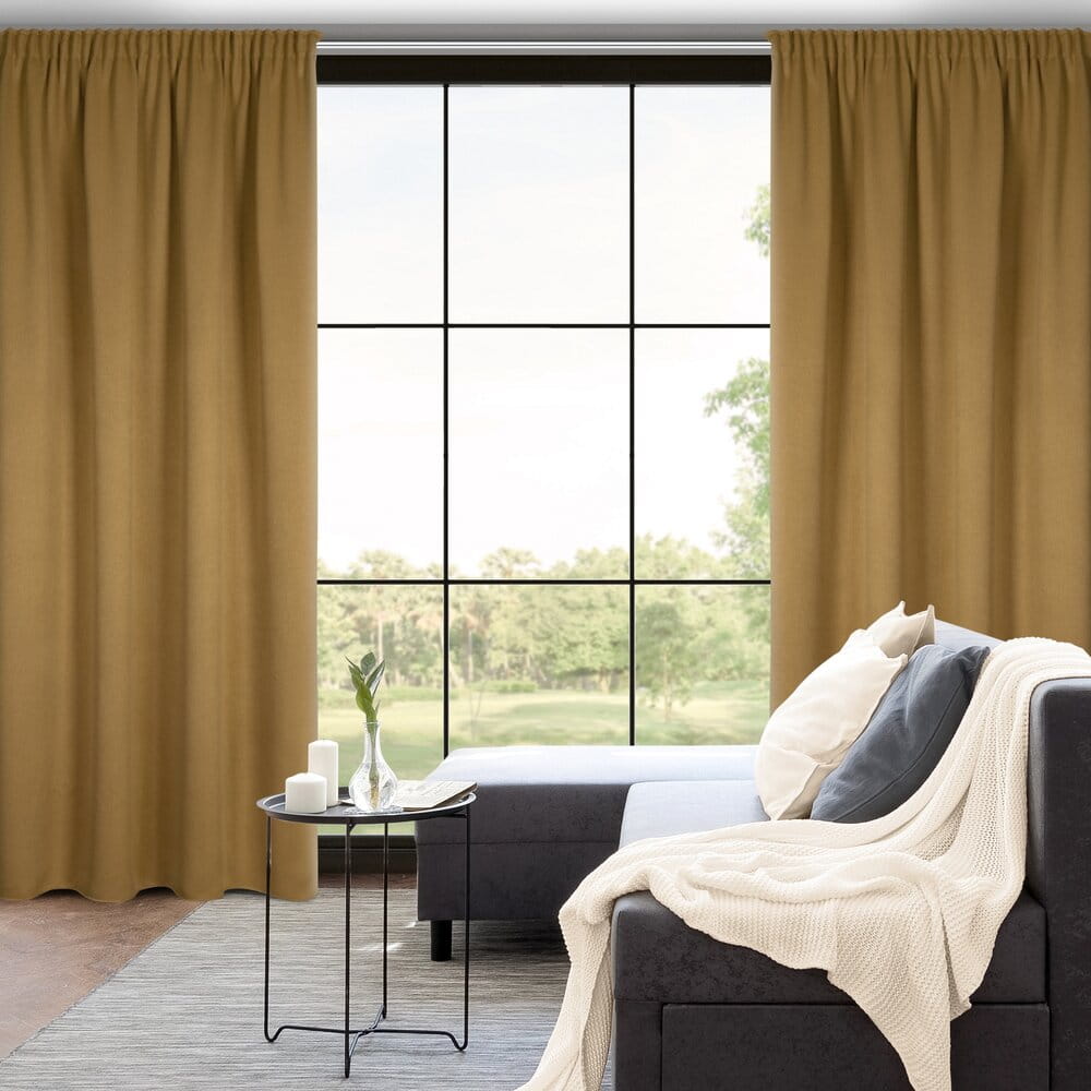 Zasłona zaciemniająca jednokolorowa strukturalna typu blackout szerokość: 130 cm, długość: 300 cm, kolor: miodowy, Gramatura: 340 GSM, Skład: 100% poliester