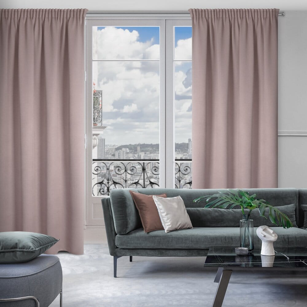 Zasłona zaciemniająca jednokolorowa strukturalna typu blackout szerokość: 130 cm, długość: 300 cm, kolor: pudrowy róż, Gramatura: 340 GSM, Skład: 100% poliester