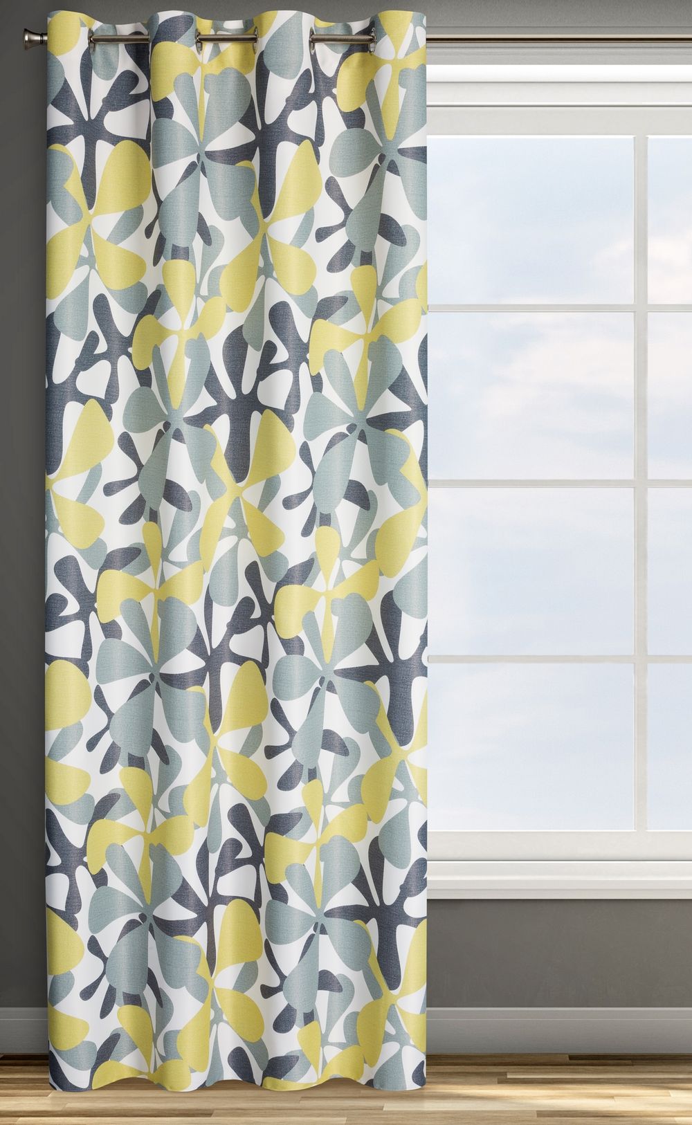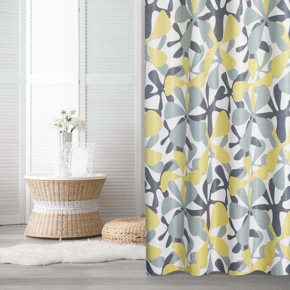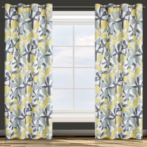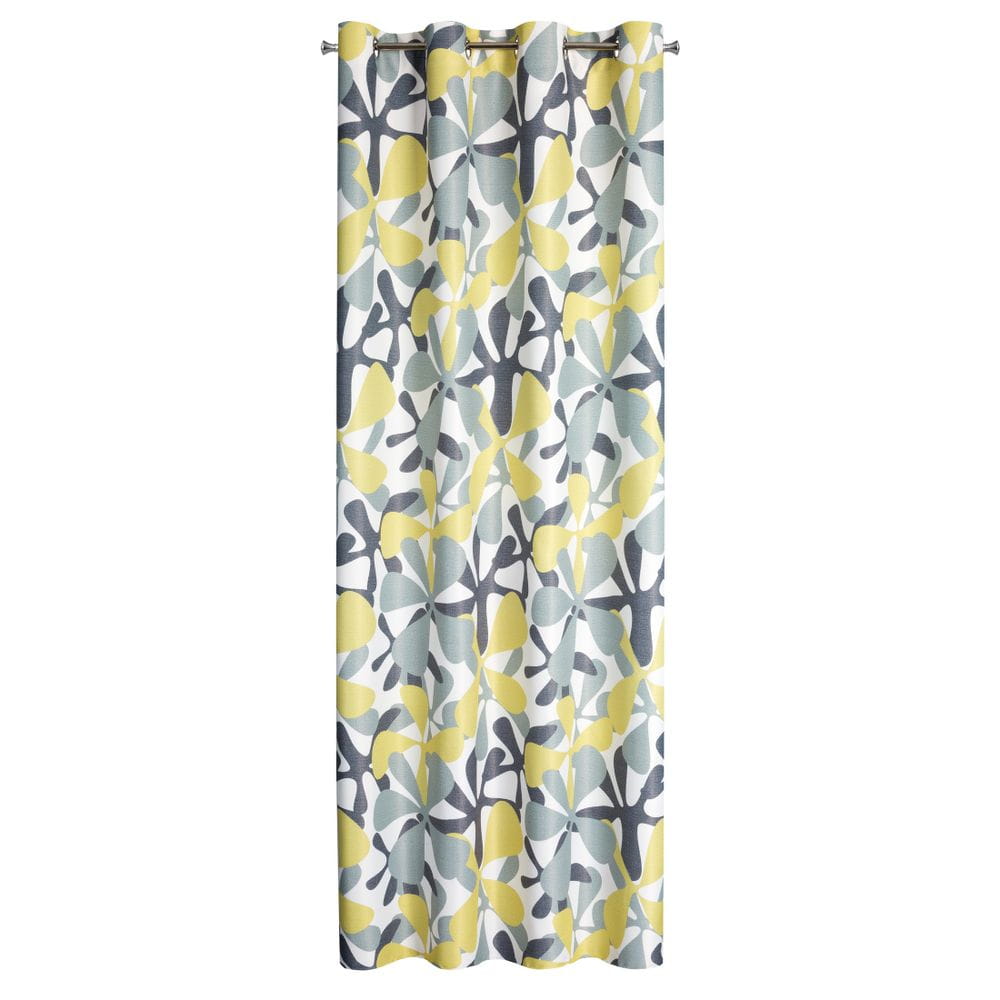 Zasłona gotowa zaciemniająca z nadrukiem szerokość: 140 cm, długość: 250 cm, kolor: musztardowy, Gramatura: 210 GSM, Skład: 100% poliester