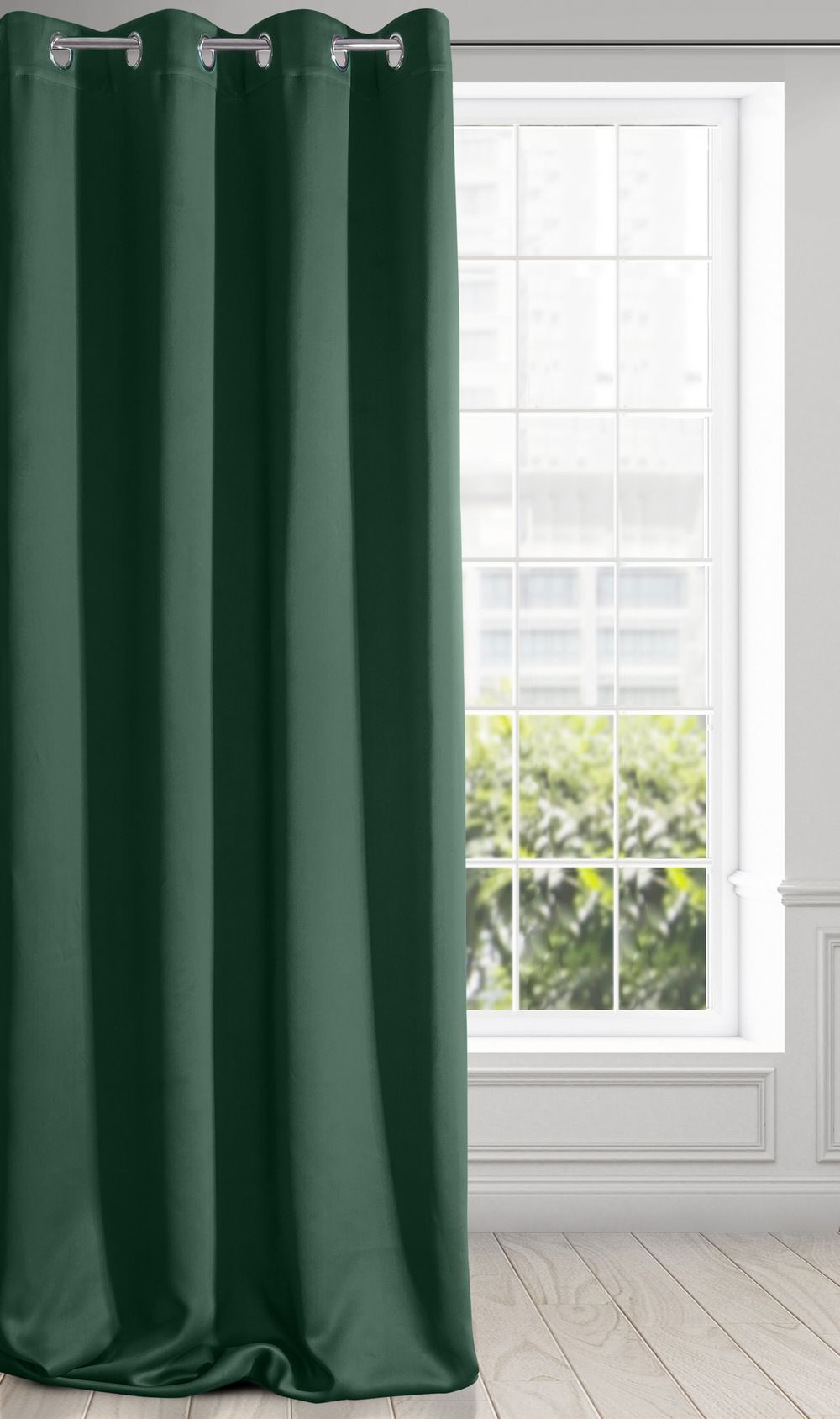 Zasłona zaciemniająca z mięsistej tkaniny typu blackout. Doskonała izolacja cieplna i akustyczna wnetrza. Jednokolorowa zasłona o minimalistycznym designie. szerokość: 135 cm, długość: 250 cm, kolor: ciemnozielony, Gramatura: 210 GSM, Skład: 100% poliester