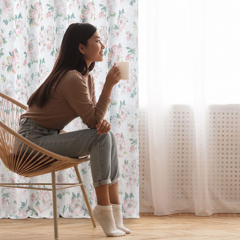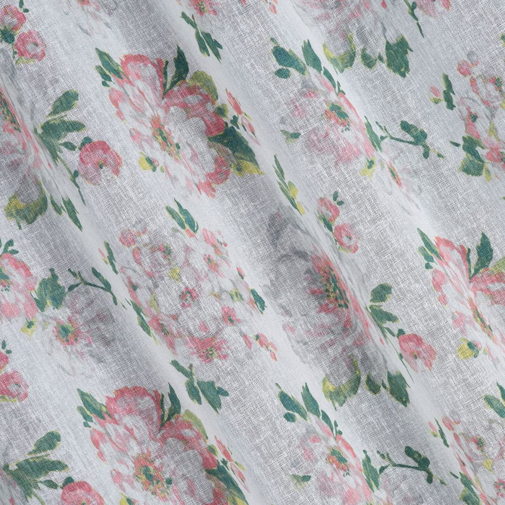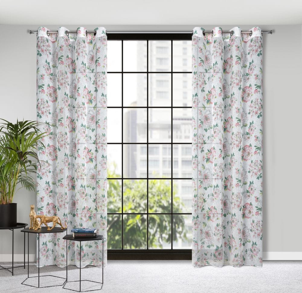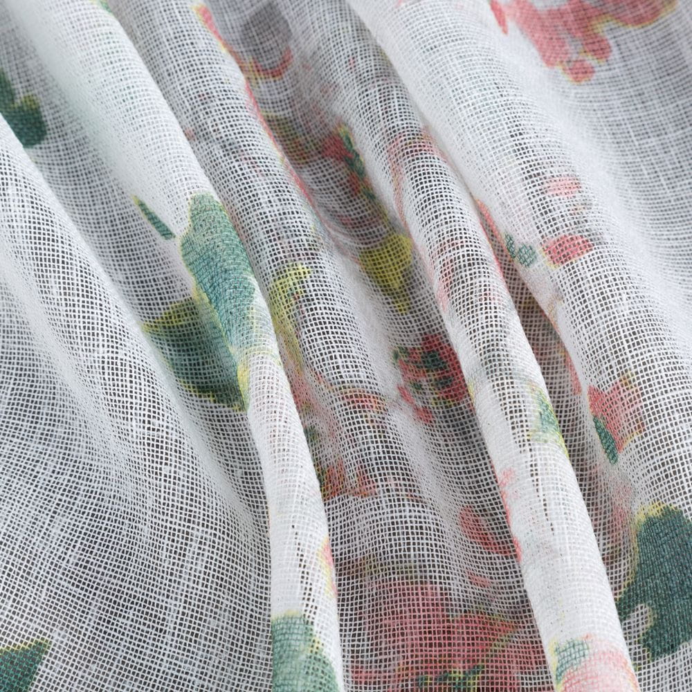 Klasyczna zasłona z tkaniny o strukturze płótna zdobiona pastelowym nadrukiem kwiatów ogrodowych. Średni stopień zaciemnienia. Tkanina łatwa w prasowaniu. szerokość: 140 cm, długość: 250 cm, kolor: biały/różowy, Gramatura: 110 GSM, Skład: 100% poliester