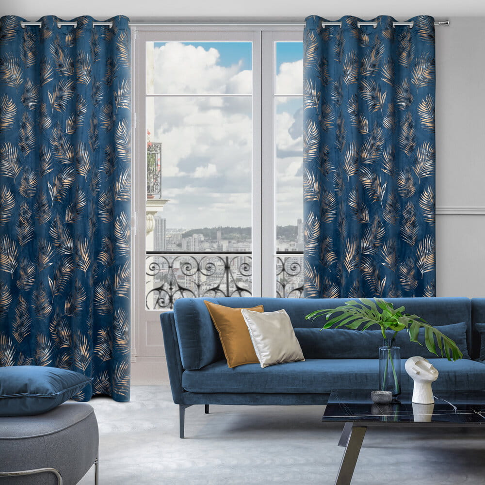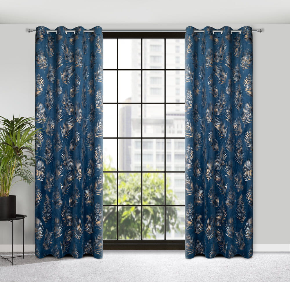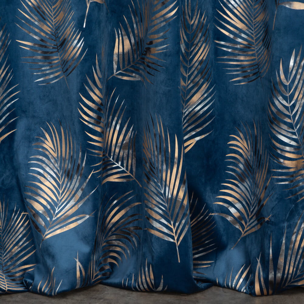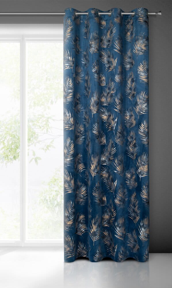 Zasłona welwetowa z szampańskim nadrukiem szerokość: 140 cm, długość: 250 cm, kolor: granatowy, Gramatura: 200 GSM, Skład: 100% poliester