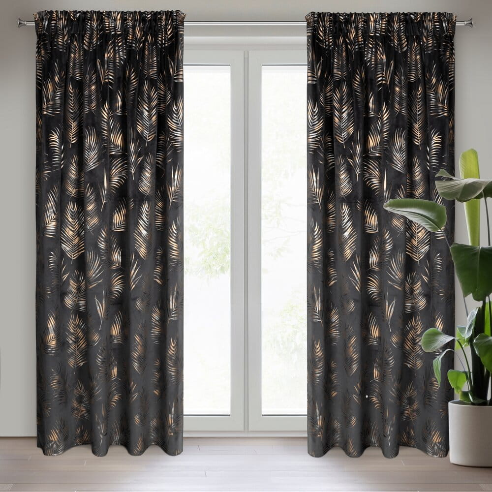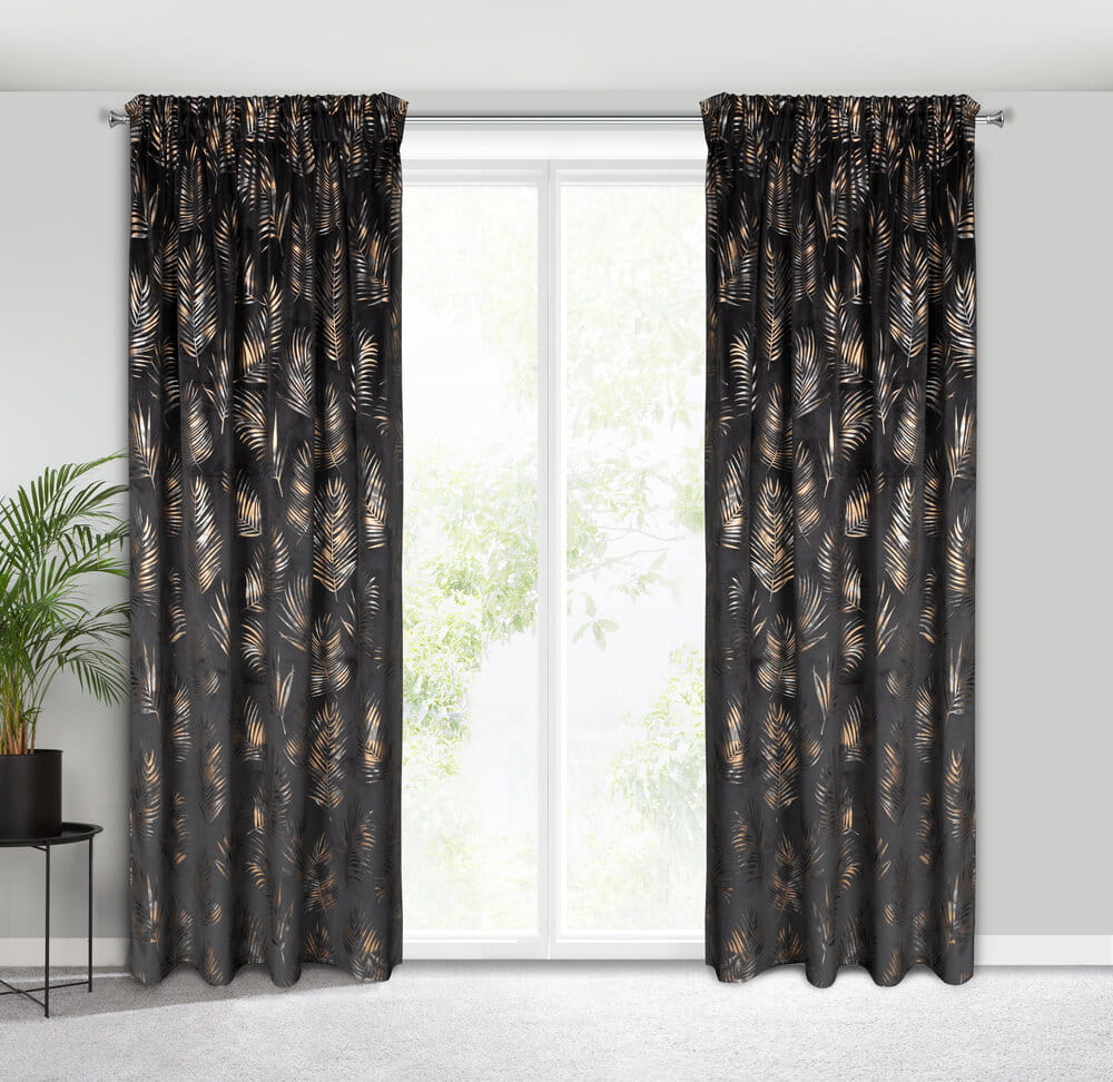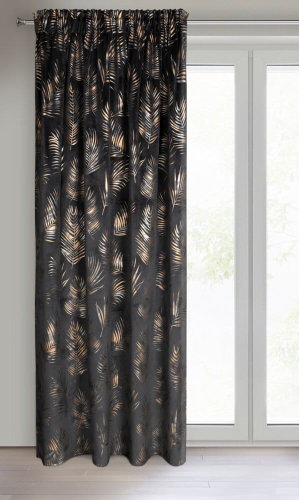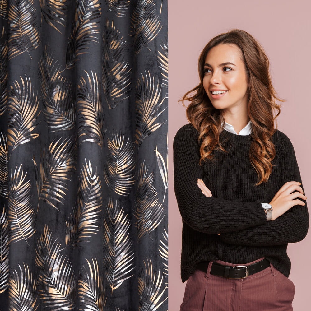 Zasłona welwetowa z cieniowanym błyszczącym nadrukiem szerokość: 140 cm, długość: 300 cm, kolor: czarny, Gramatura: 200 GSM, Skład: 100% poliester