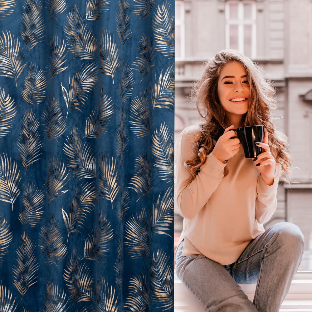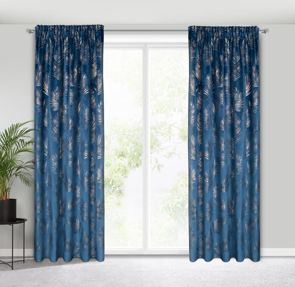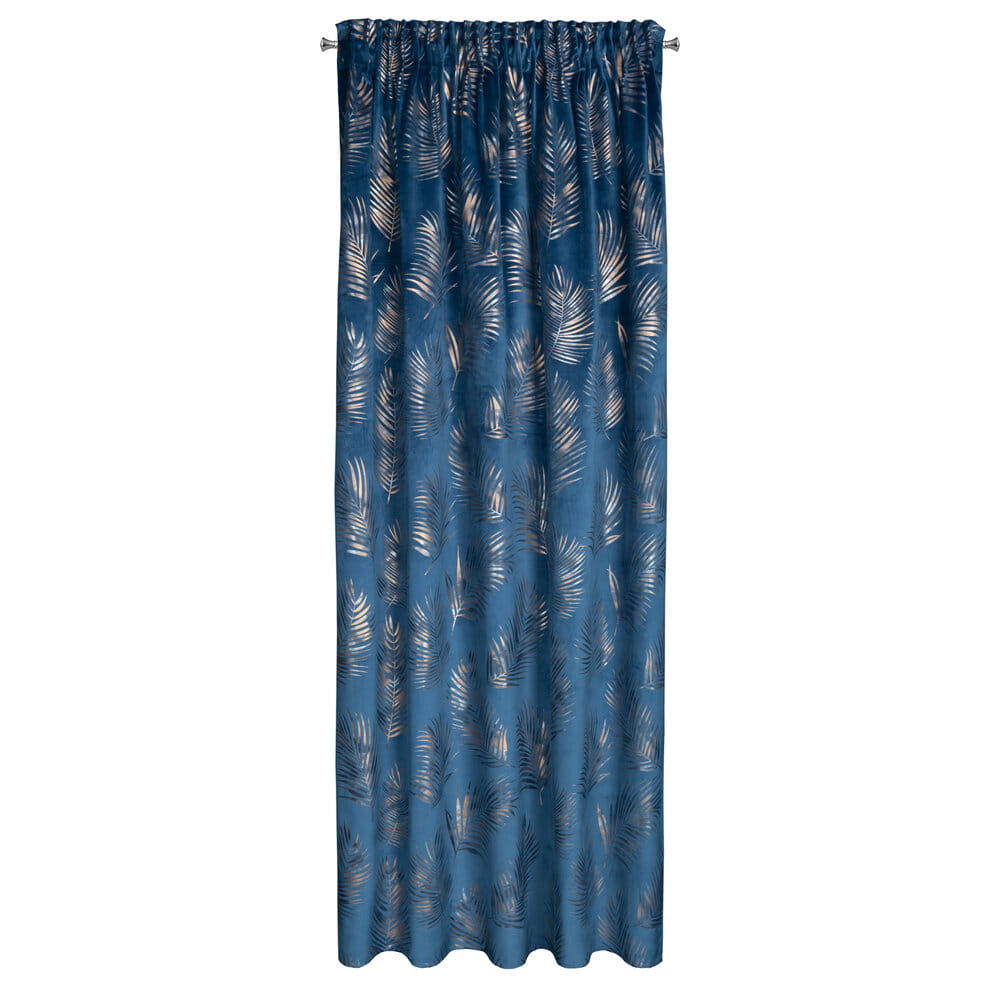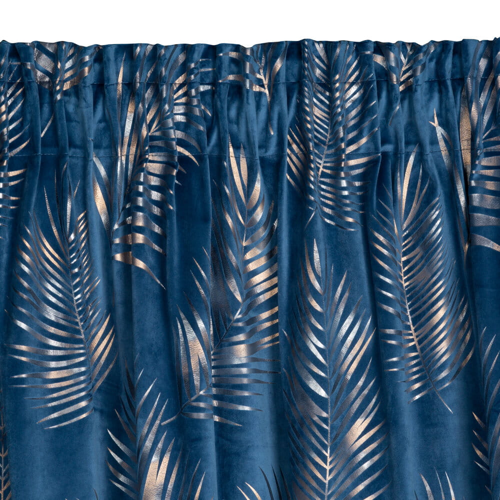 Zasłona welwetowa z cieniowanym błyszczącym nadrukiem szerokość: 140 cm, długość: 300 cm, kolor: granatowy, Gramatura: 200 GSM, Skład: 100% poliester