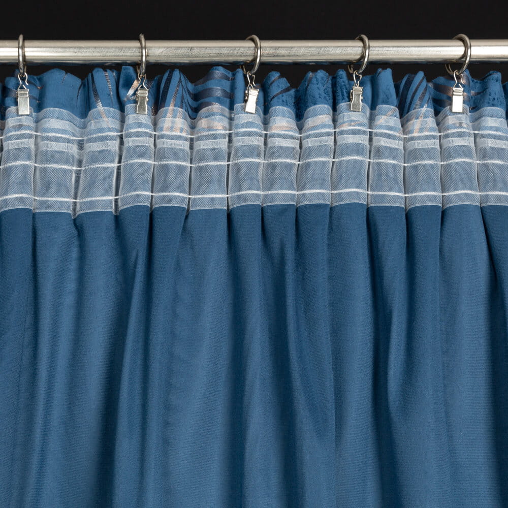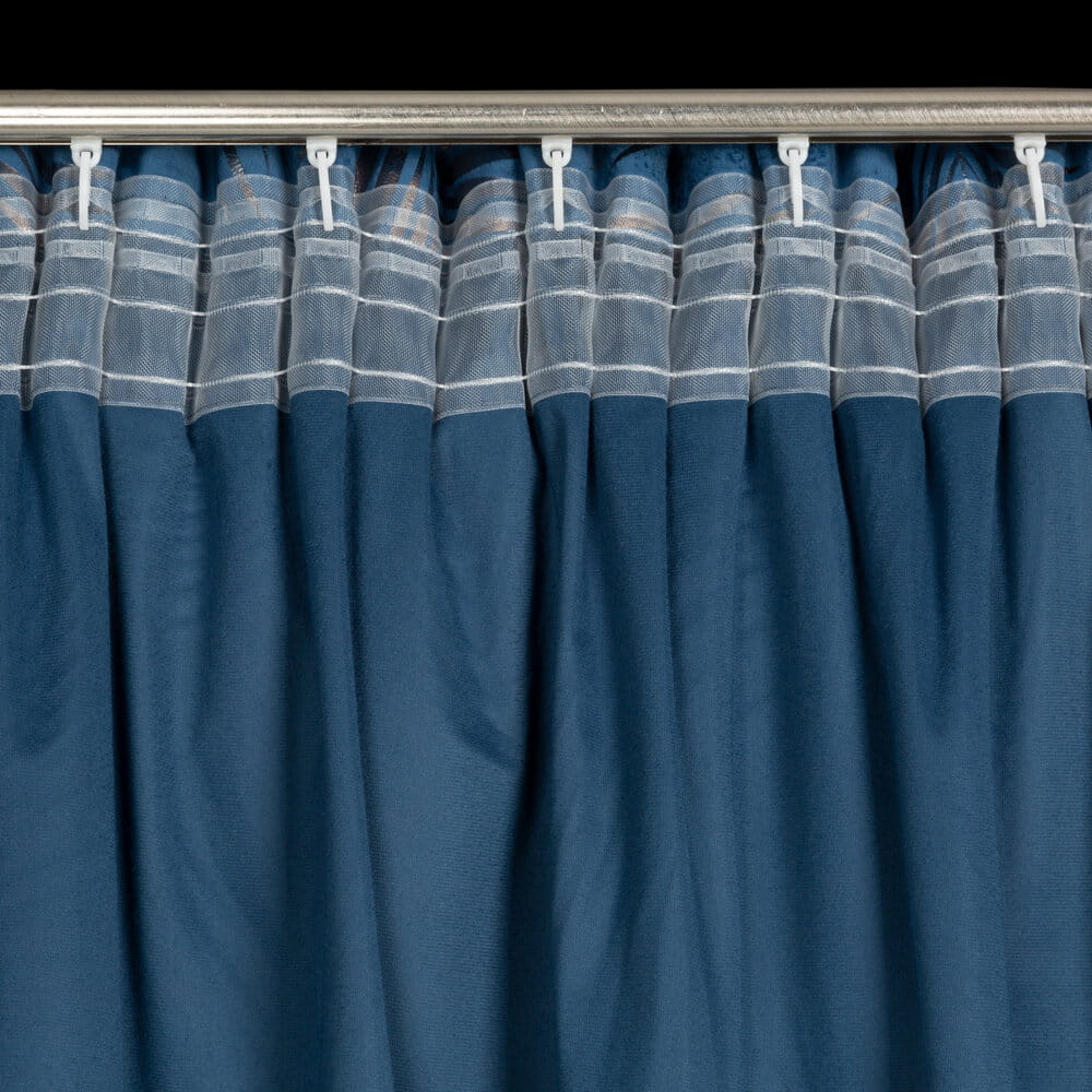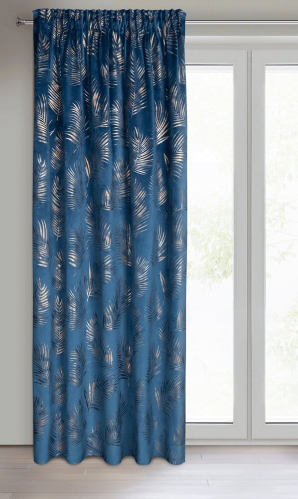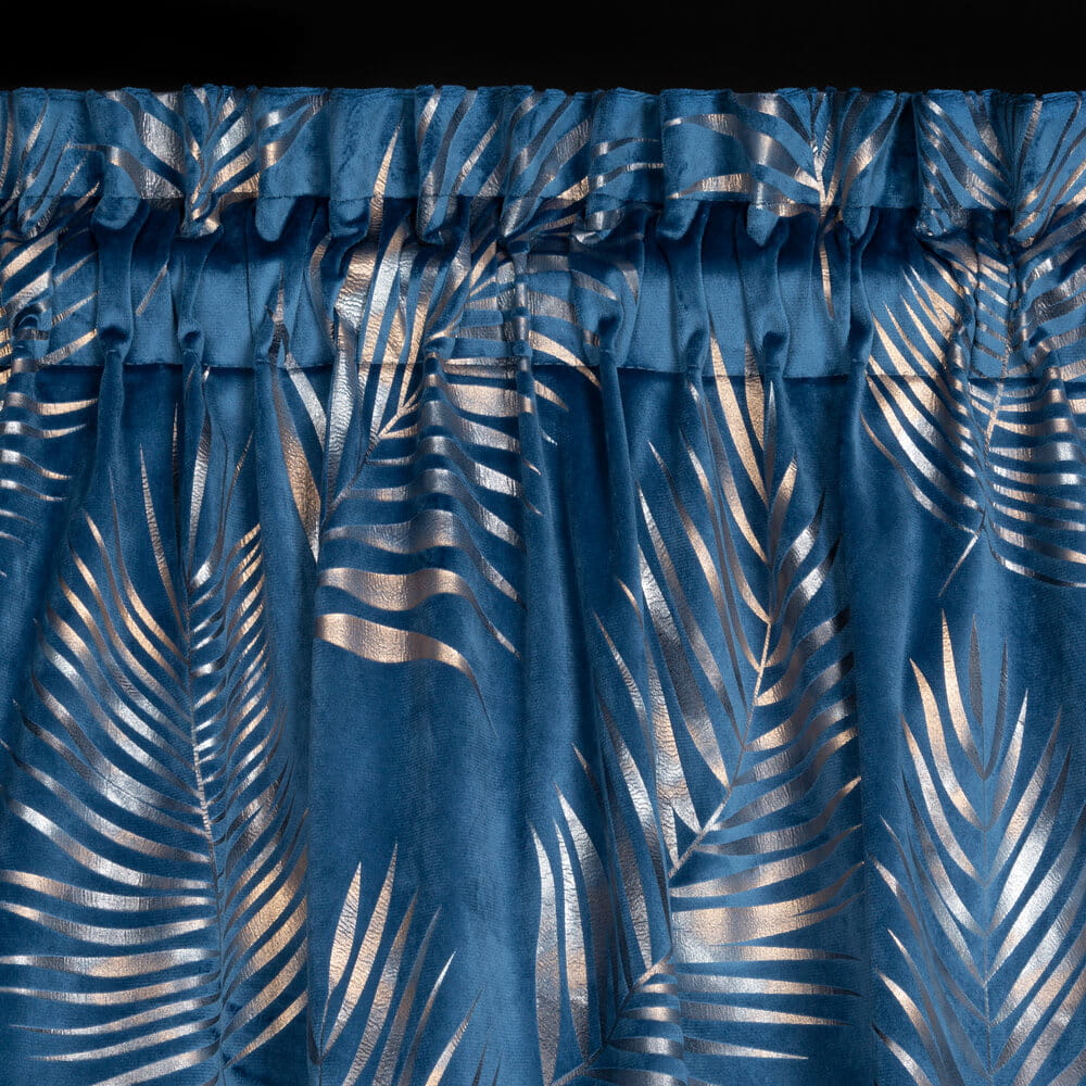 Zasłona welwetowa z cieniowanym błyszczącym nadrukiem szerokość: 140 cm, długość: 300 cm, kolor: granatowy, Gramatura: 200 GSM, Skład: 100% poliester