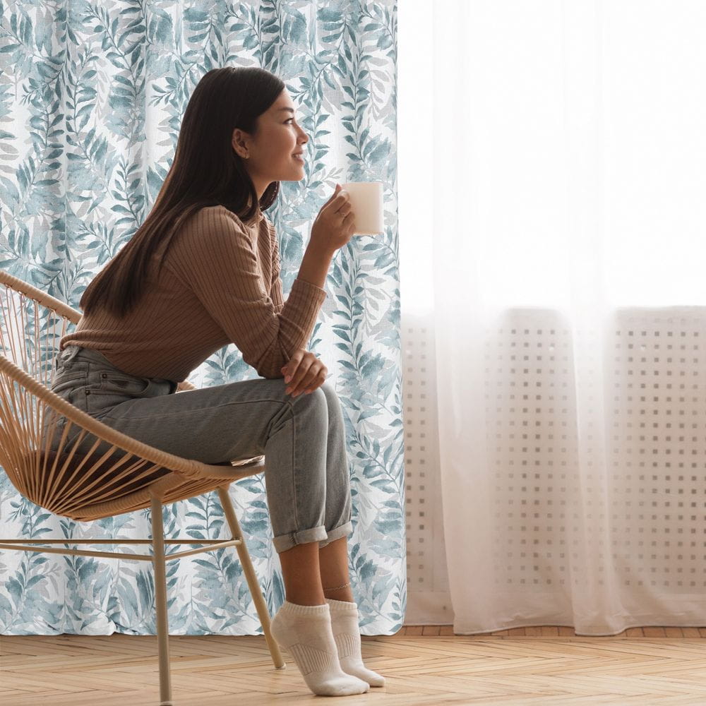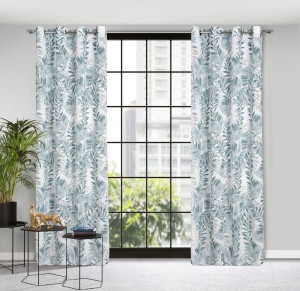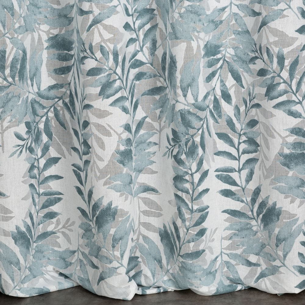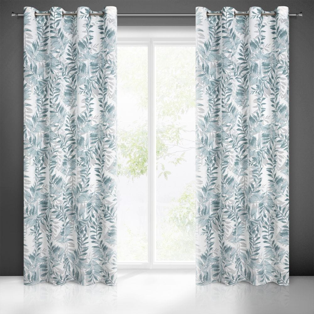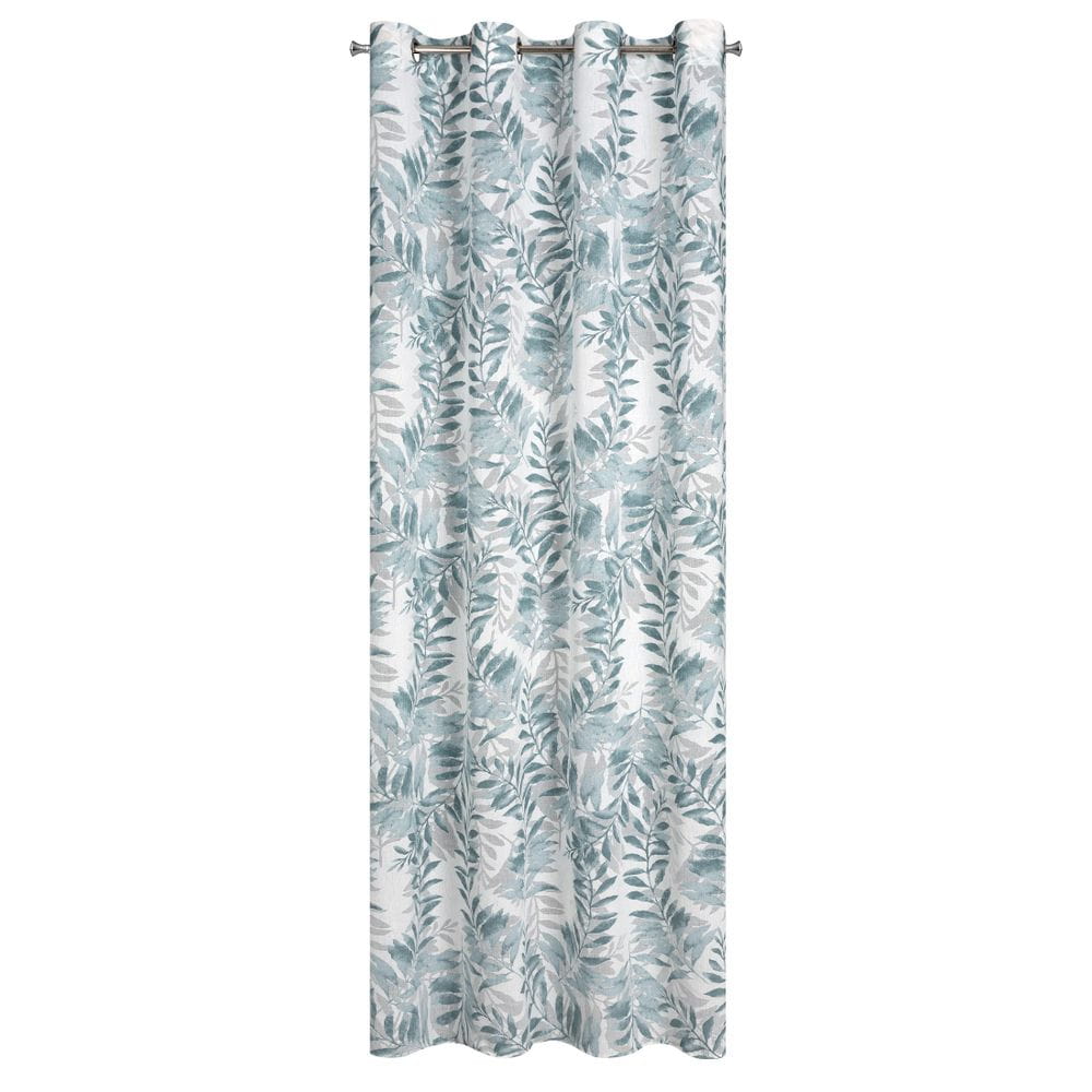 Zasłona gotowa z motywem roślinnym szerokość: 140 cm, długość: 250 cm, kolor: niebieski/ecru, Gramatura: 120 GSM, Skład: 100%poliester