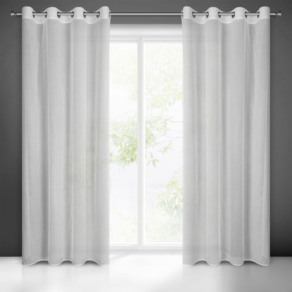Firana o strukturze drobnej siatki zdobiona delikatnymi cekinami szerokość: 140 cm, długość: 250 cm, kolor: biały, Skład: 100% poliester