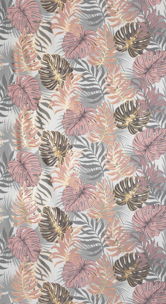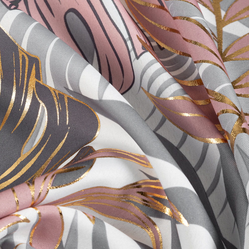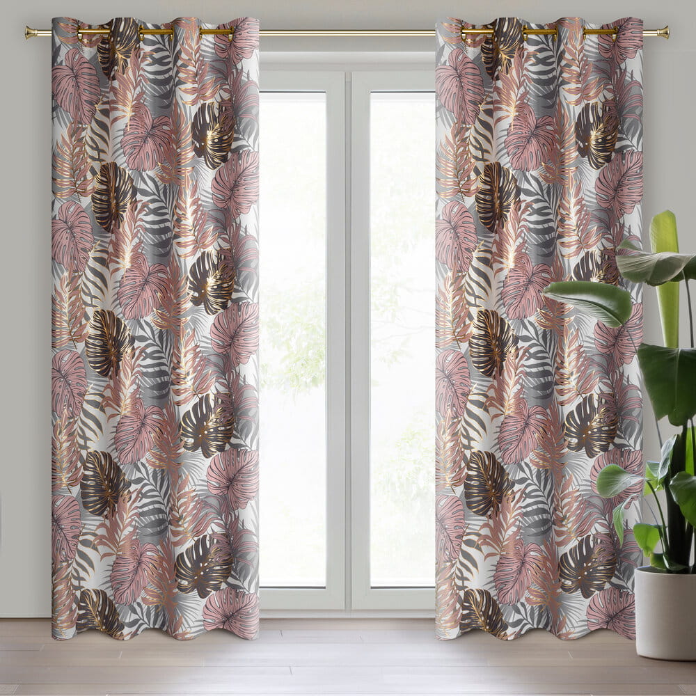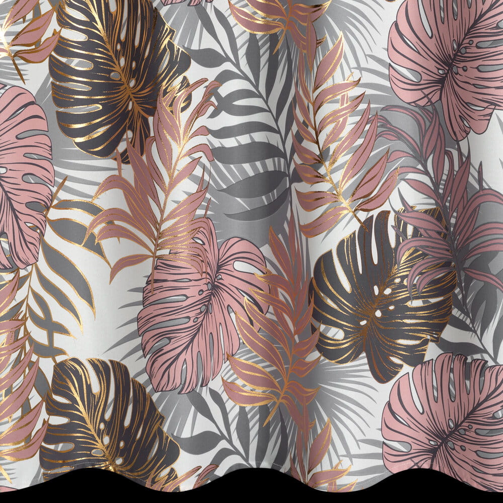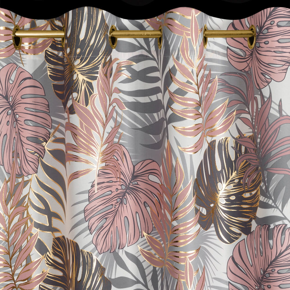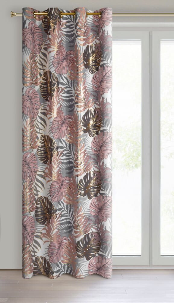 Zasłona z motywem botanicznym z błyszczącym nadrukiem szerokość: 140 cm, długość: 250 cm, kolor: pudrowy róż, Gramatura: 135 GSM, Skład: 100% poliester