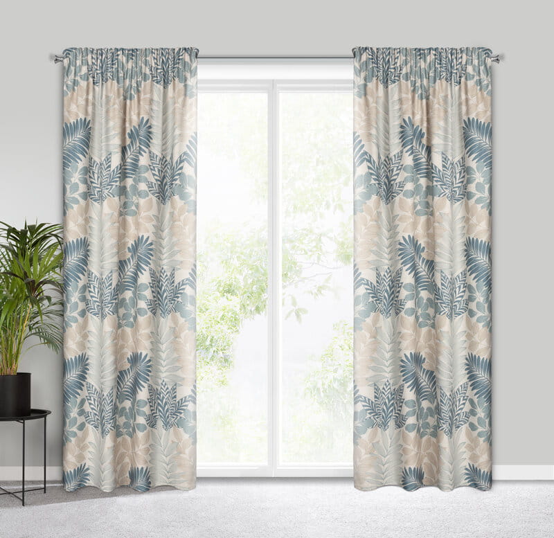 Zasłona gotowa o strukturze naturalnej tkaniny z nadrukiem szerokość: 140 cm, długość: 270 cm, Gramatura: 180 GSM, Skład: 100% poliester