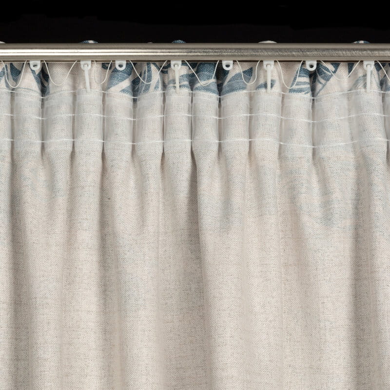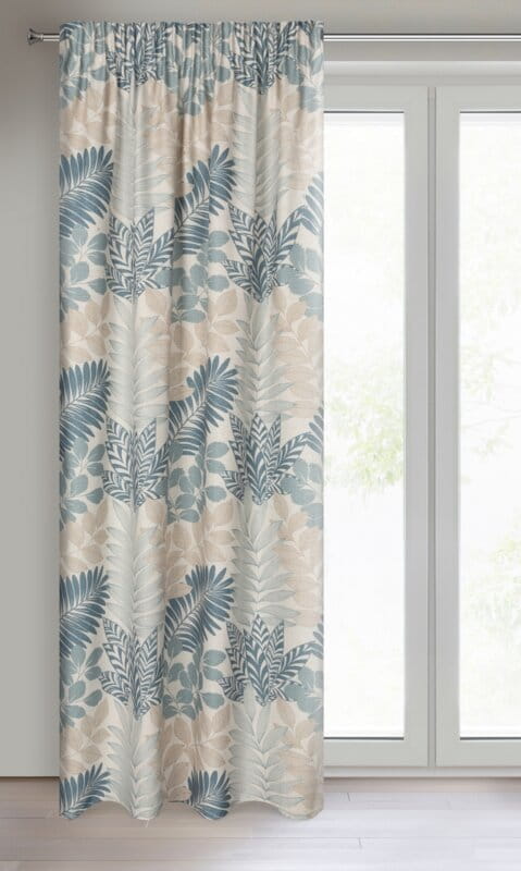 Zasłona gotowa o strukturze naturalnej tkaniny z nadrukiem