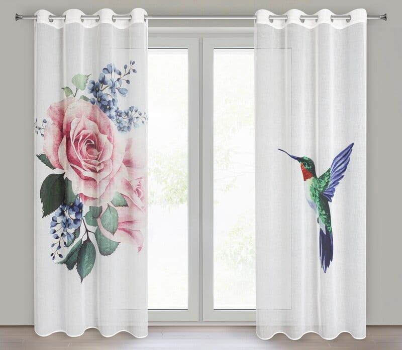 Komplet zasłon gotowych z motywem kwiatowym, pakowana w komplecie po 2 kolor: biały, Skład: 100% poliester