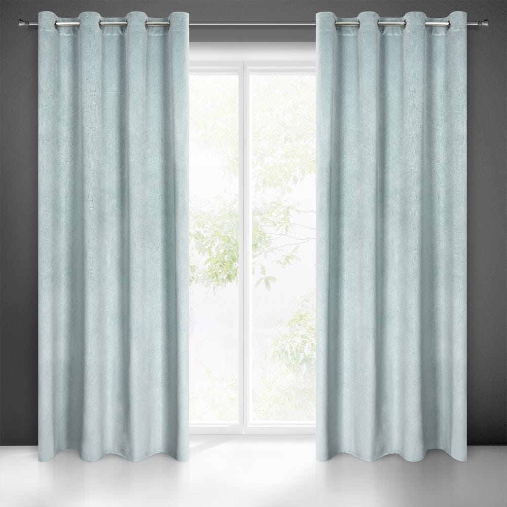 Zasłona welwetowa z efektownym wytłoczeniem szerokość: 140 cm, długość: 250 cm, kolor: niebieski, Gramatura: 200 GSM, Skład: 100% poliester