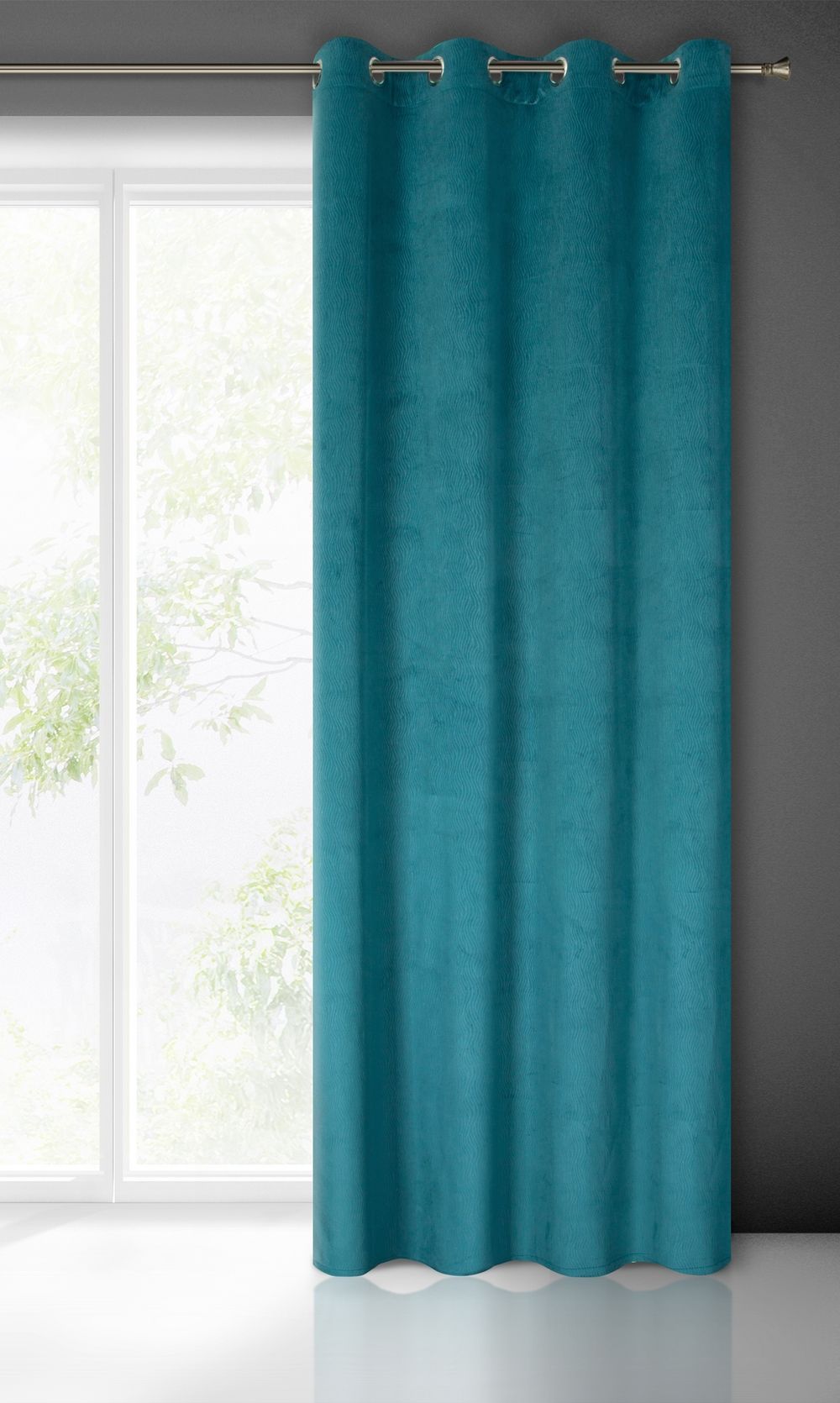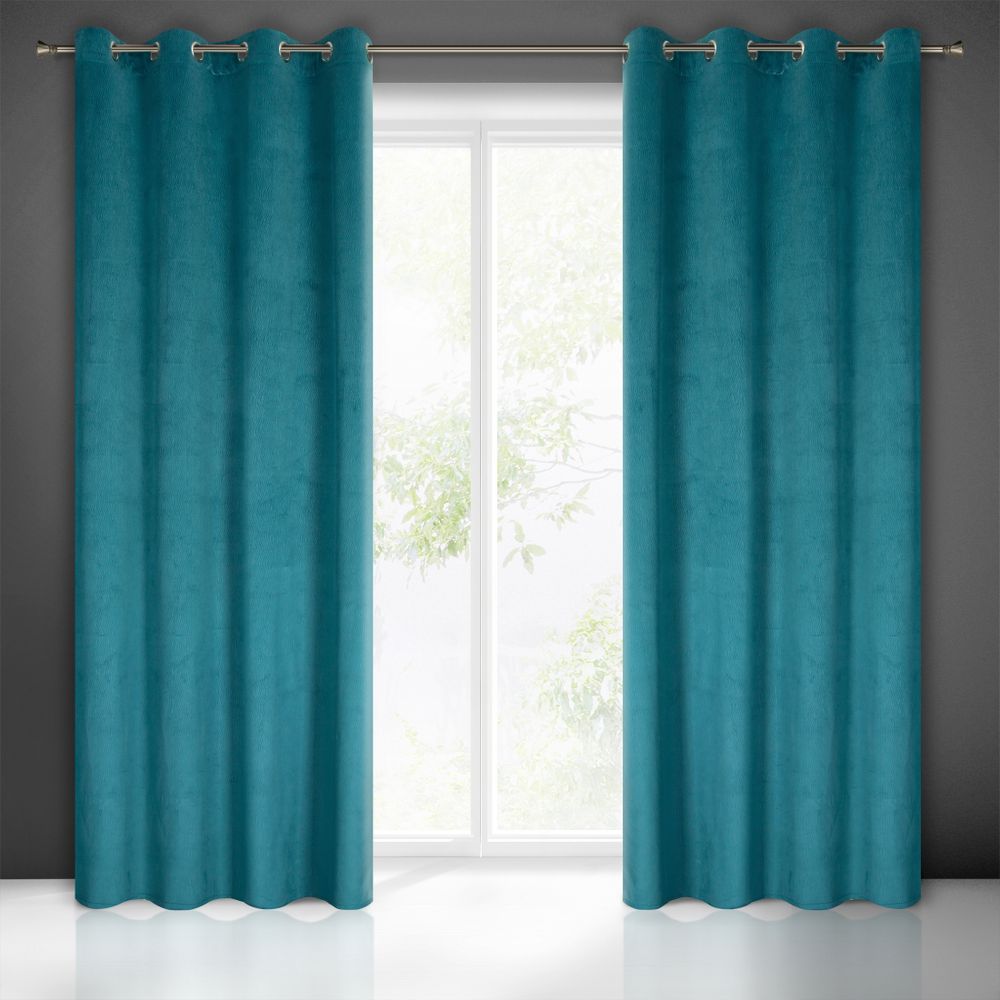 Zasłona welwetowa z efektownym wytłoczeniem szerokość: 140 cm, długość: 250 cm, kolor: niebieski, Gramatura: 200 GSM, Skład: 100% poliester