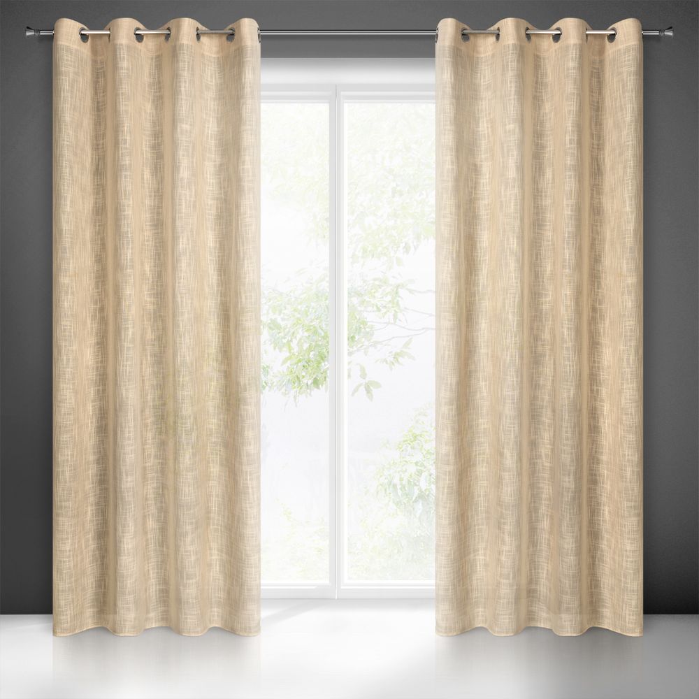 Zasłona gotowa w stylu eko szerokość: 140 cm, długość: 250 cm, kolor: beżowy, Gramatura: 195GSM GSM, Skład: 100%poliester