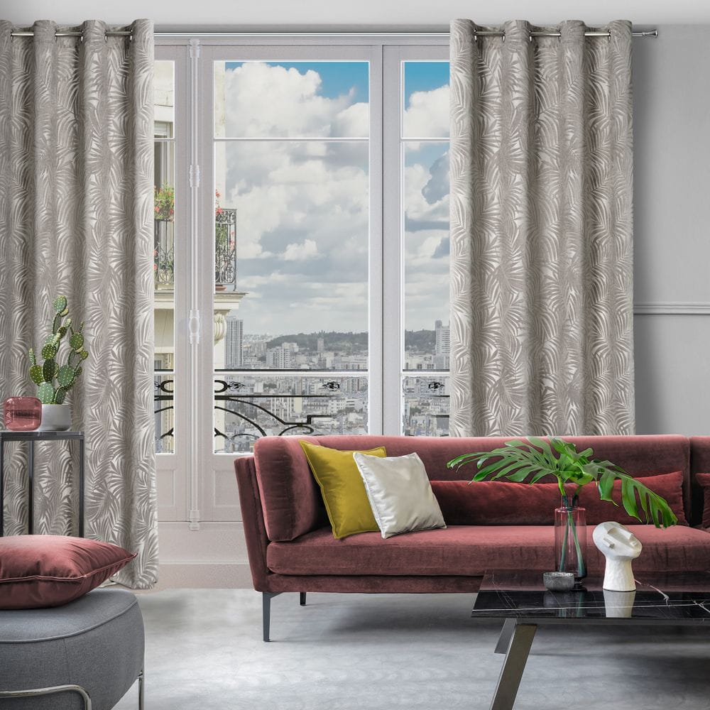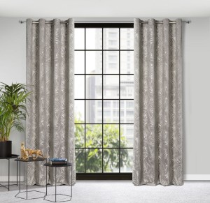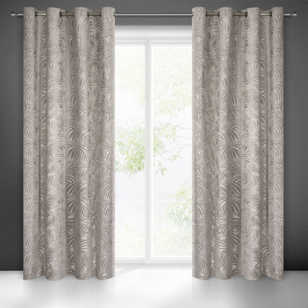 Zasłona jednokolorowa z motywem roślinnym szerokość: 140 cm, długość: 250 cm, kolor: beżowy, Gramatura: 320 GSM, Skład: 100%poliester