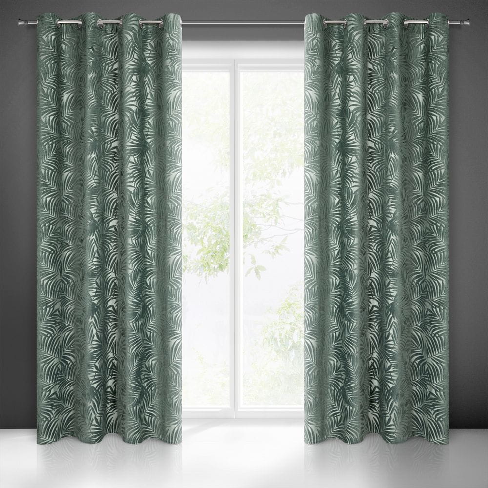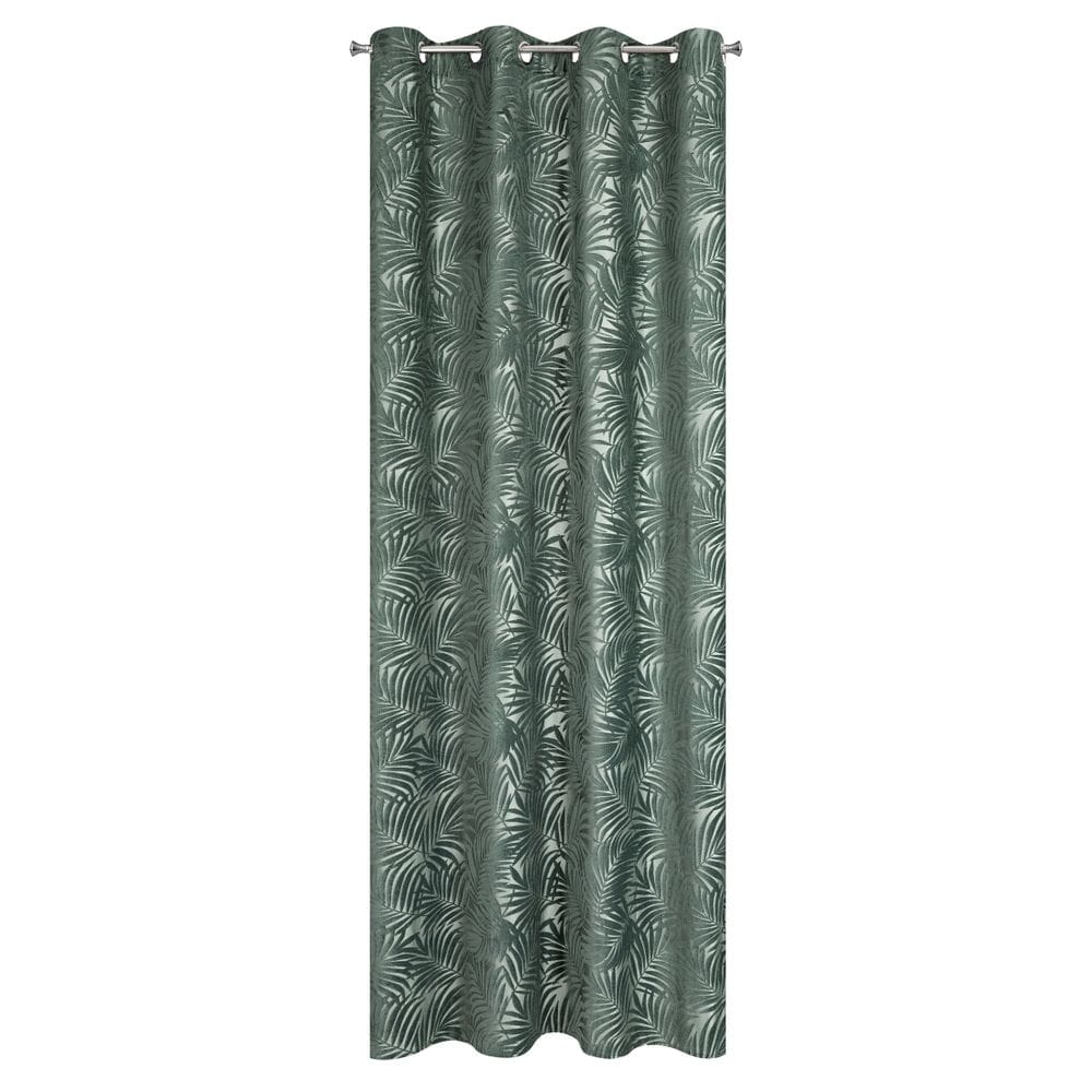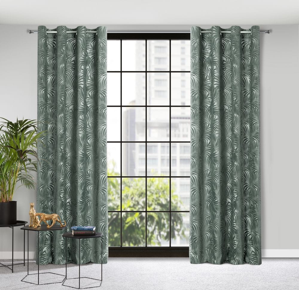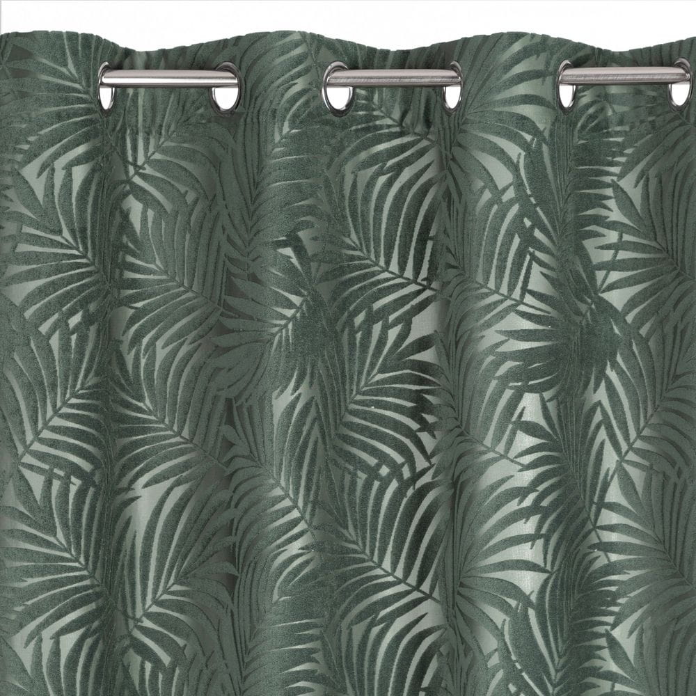 Zasłona jednokolorowa z motywem roślinnym szerokość: 140 cm, długość: 250 cm, kolor: ciemnomiętowy, Gramatura: 320 GSM, Skład: 100%poliester