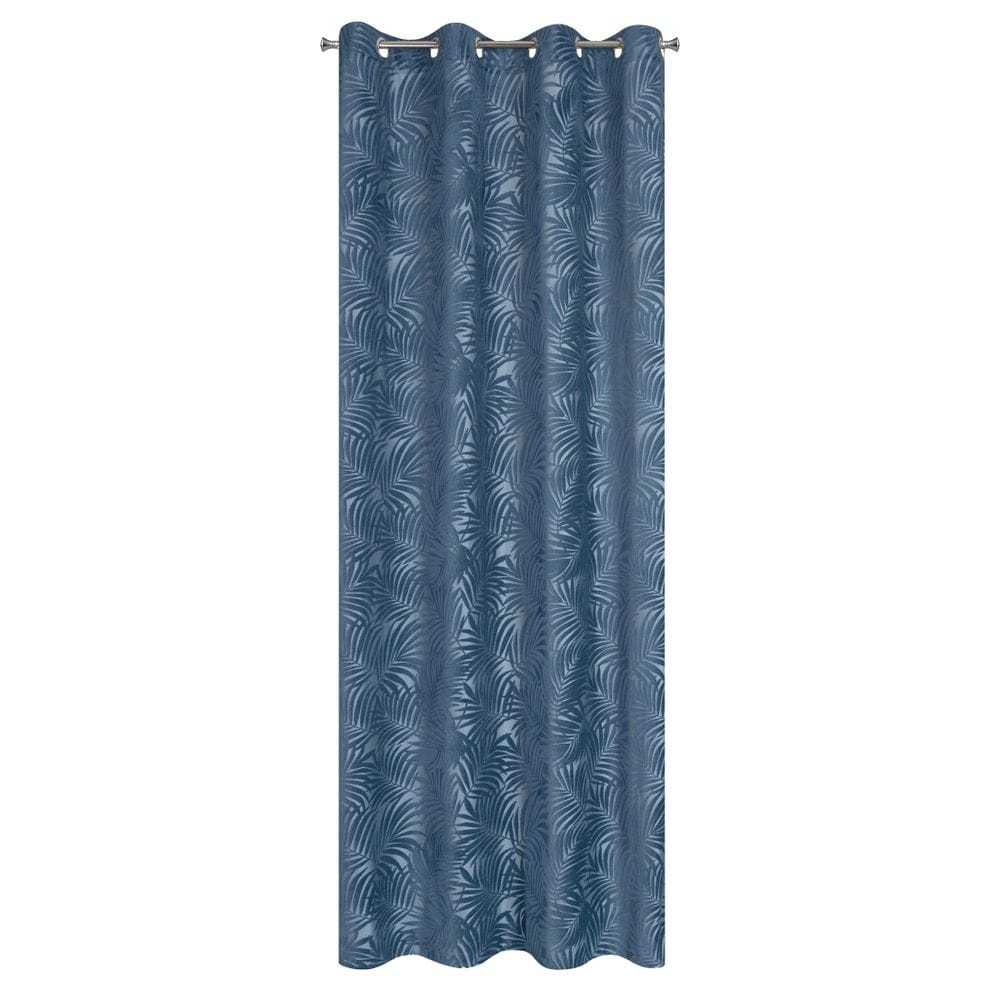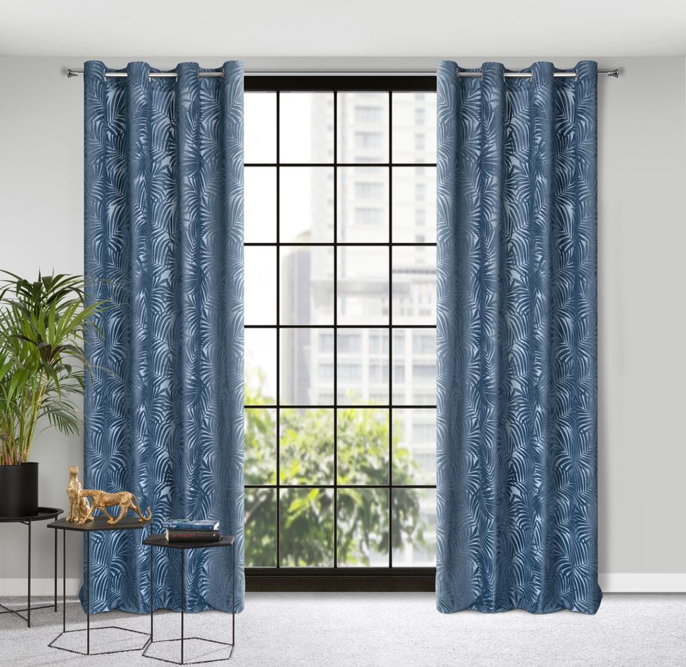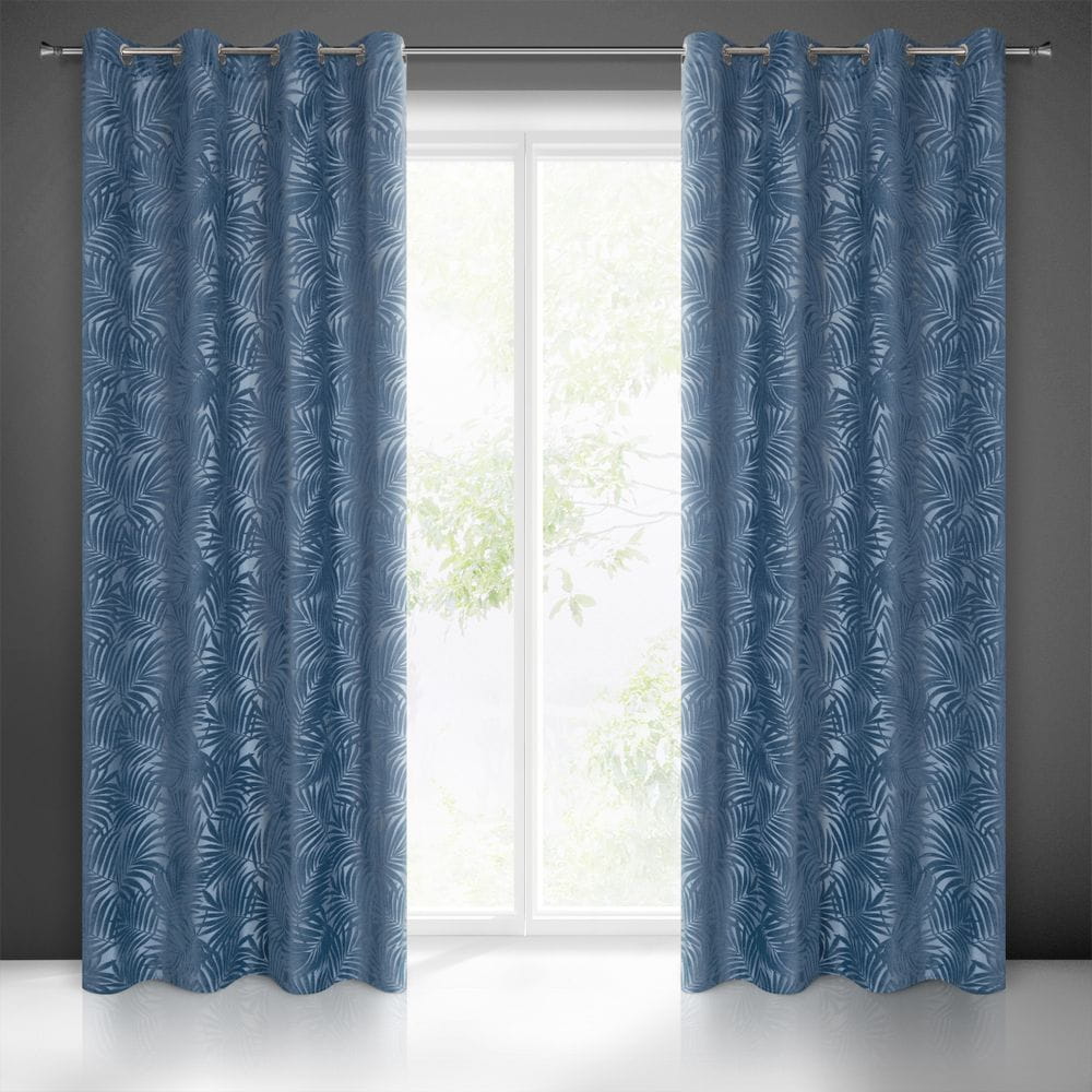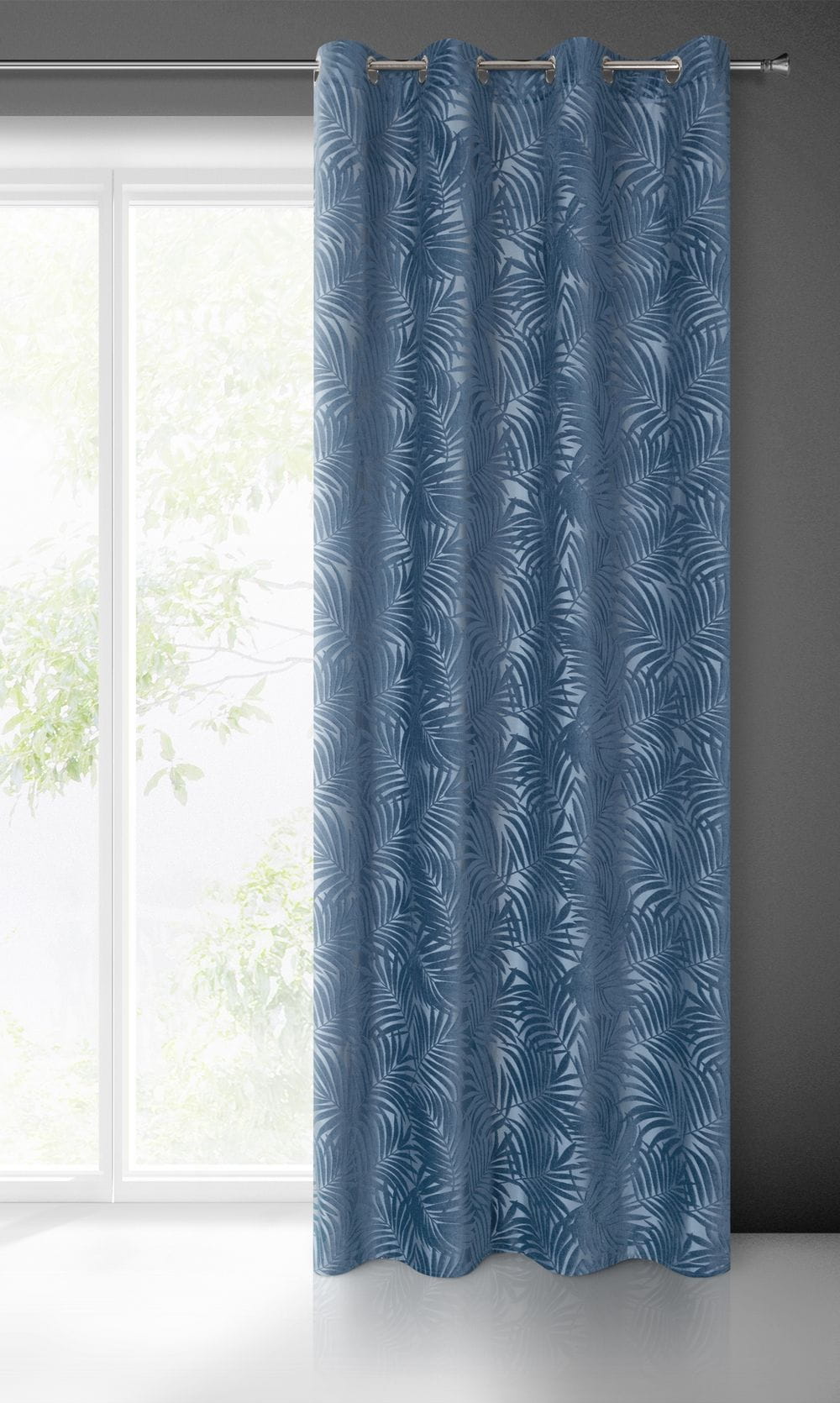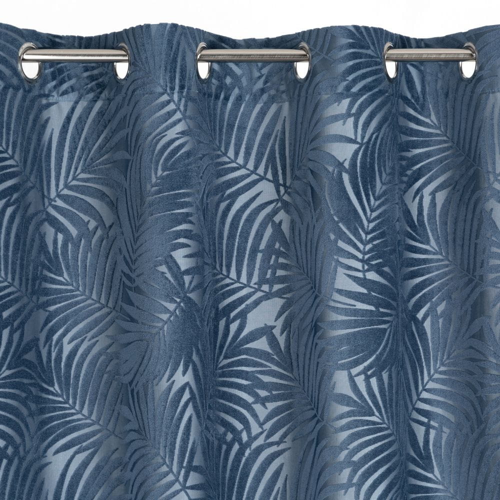 Zasłona jednokolorowa z motywem roślinnym szerokość: 140 cm, długość: 250 cm, kolor: ciemnoniebieski, Gramatura: 320 GSM, Skład: 100%poliester