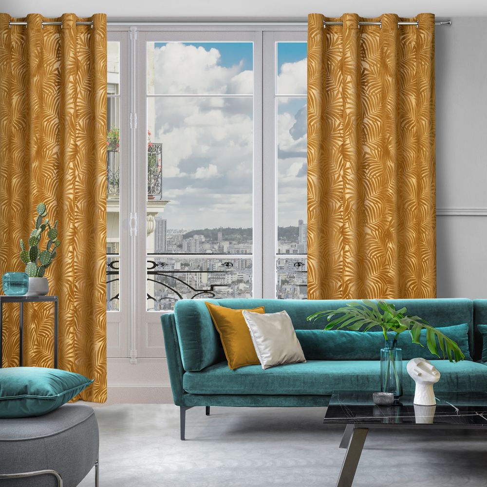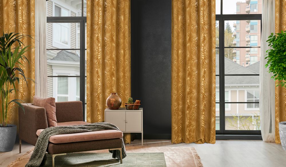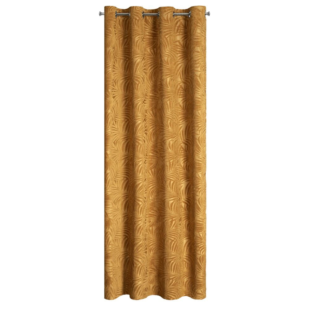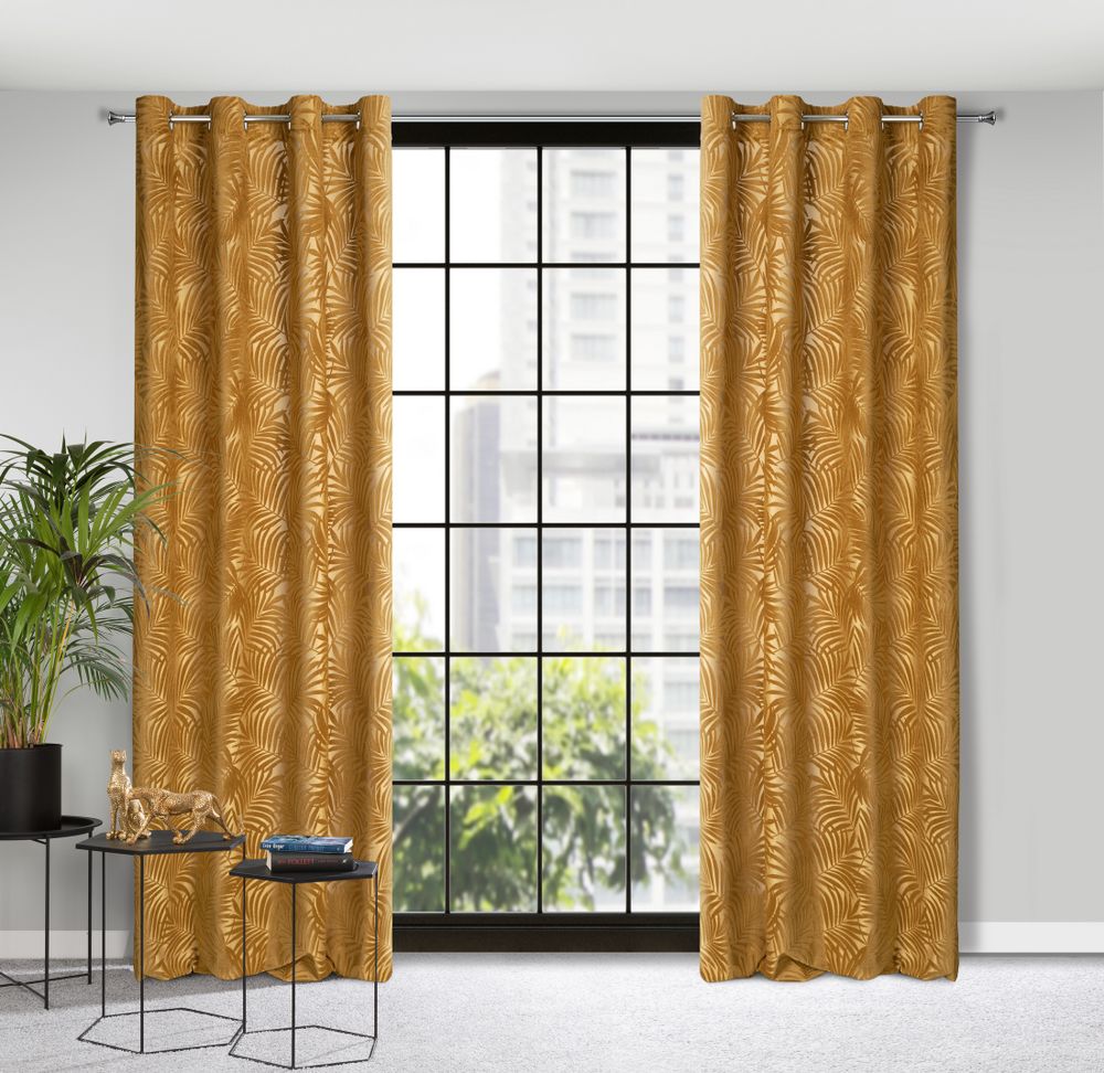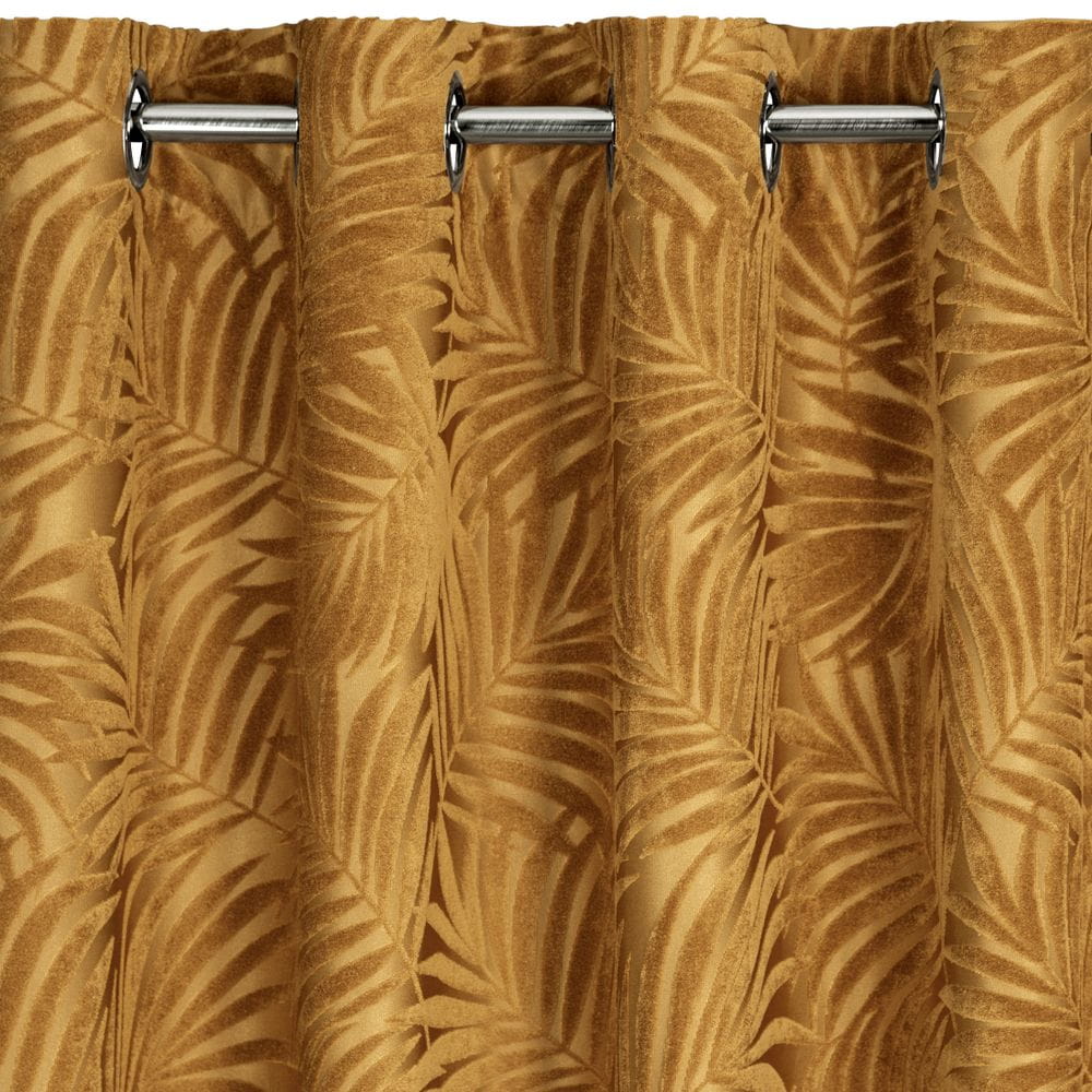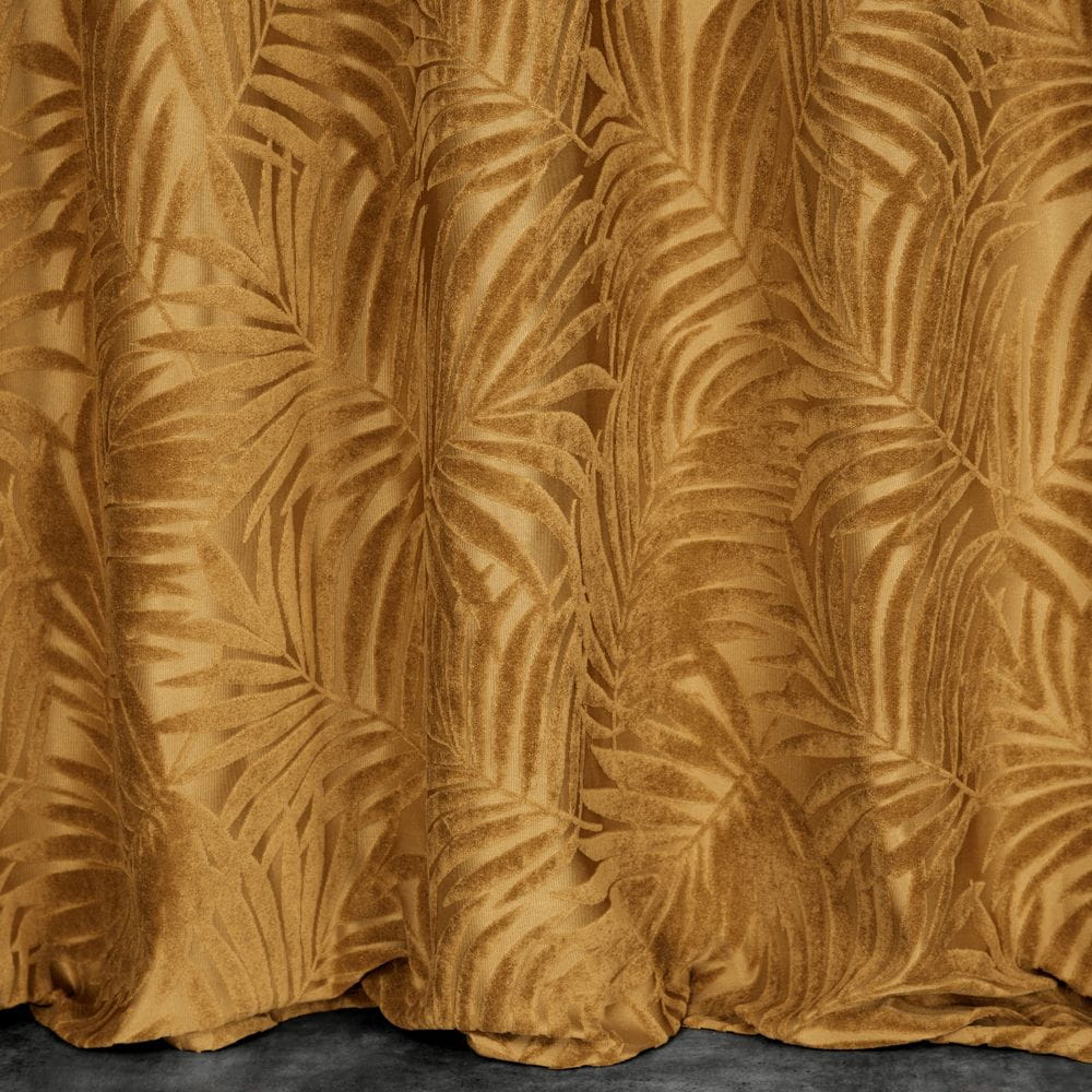 Zasłona jednokolorowa z motywem roślinnym szerokość: 140 cm, długość: 250 cm, kolor: miodowy, Gramatura: 320 GSM, Skład: 100%poliester