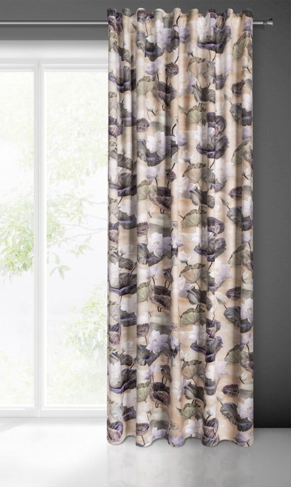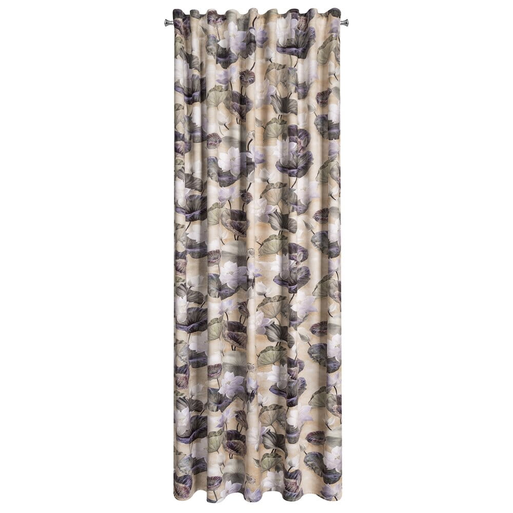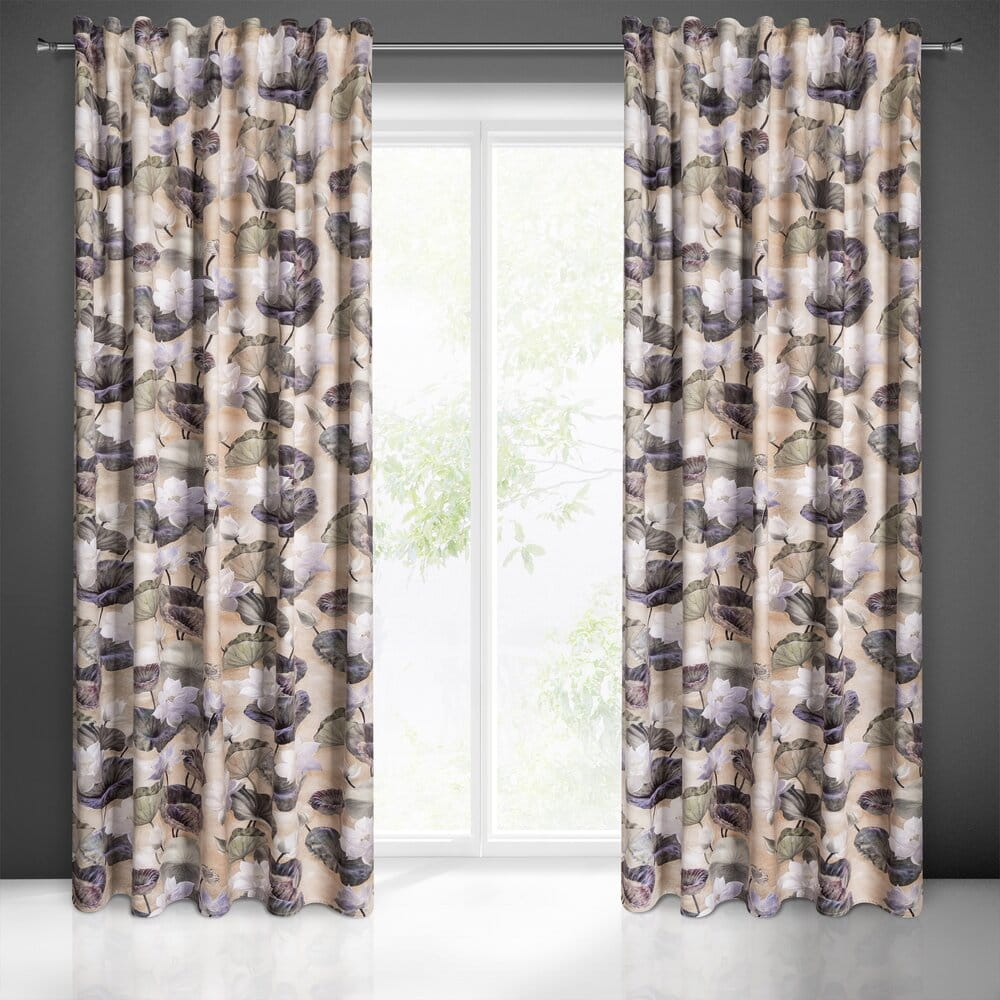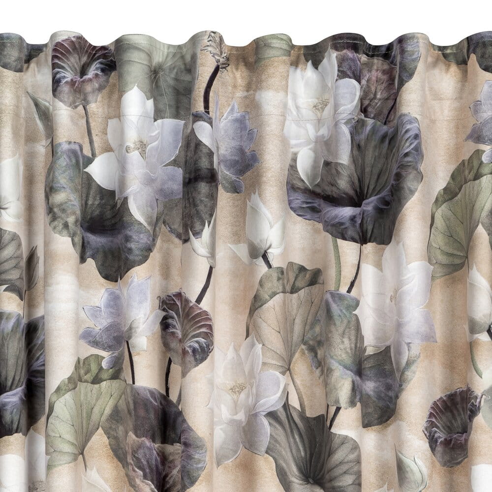 Zasłona welwetowa na taśmie z ukrytymi szelkami z nadrukiem kwiatowym szerokość: 140 cm, długość: 270 cm, kolor: beżowy, Gramatura: 200 GSM, Skład: 100% poliester