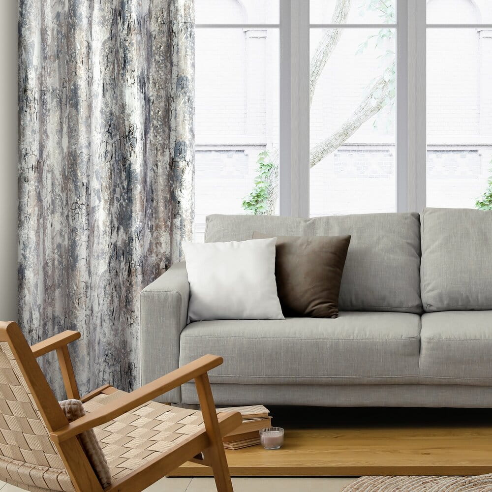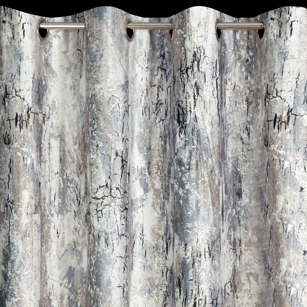 Zasłona welwetowa z metalicznym nadrukiem szerokość: 140 cm, długość: 250 cm, kolor: stalowy, Gramatura: 200 GSM, Skład: 100% poliester