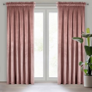 Miękka zasłona z welwetu o matowym wykończeniu. Mięsista tkanina o średnich właściwościach zaciemniających nadaje wnętrzu eleganckiego charakteru. szerokość: 140 cm, długość: 270 cm, kolor: ciemnoróżowy, Gramatura: 200 GSM, Skład: 100% poliester