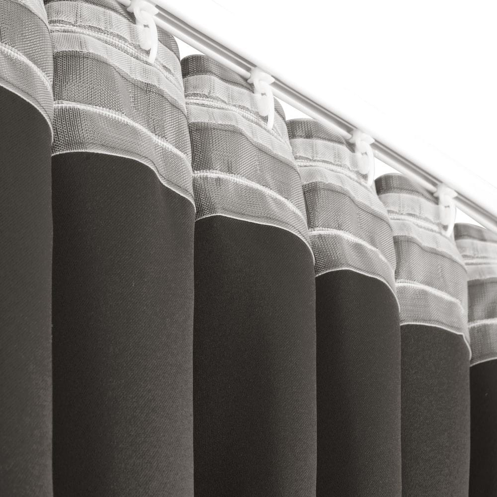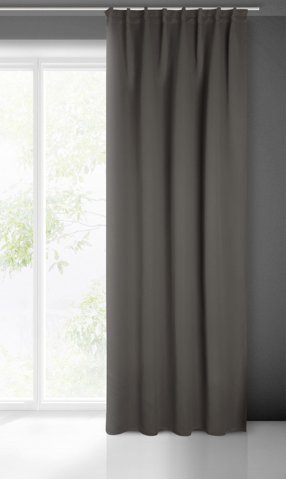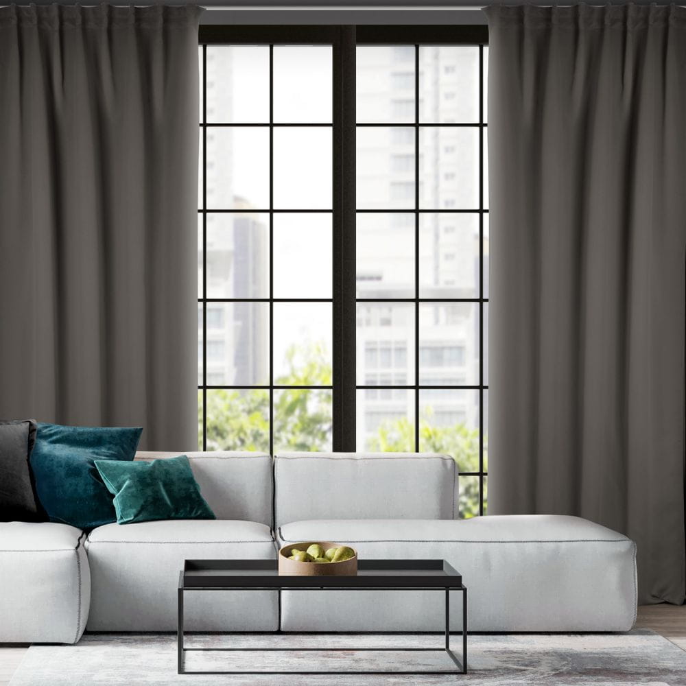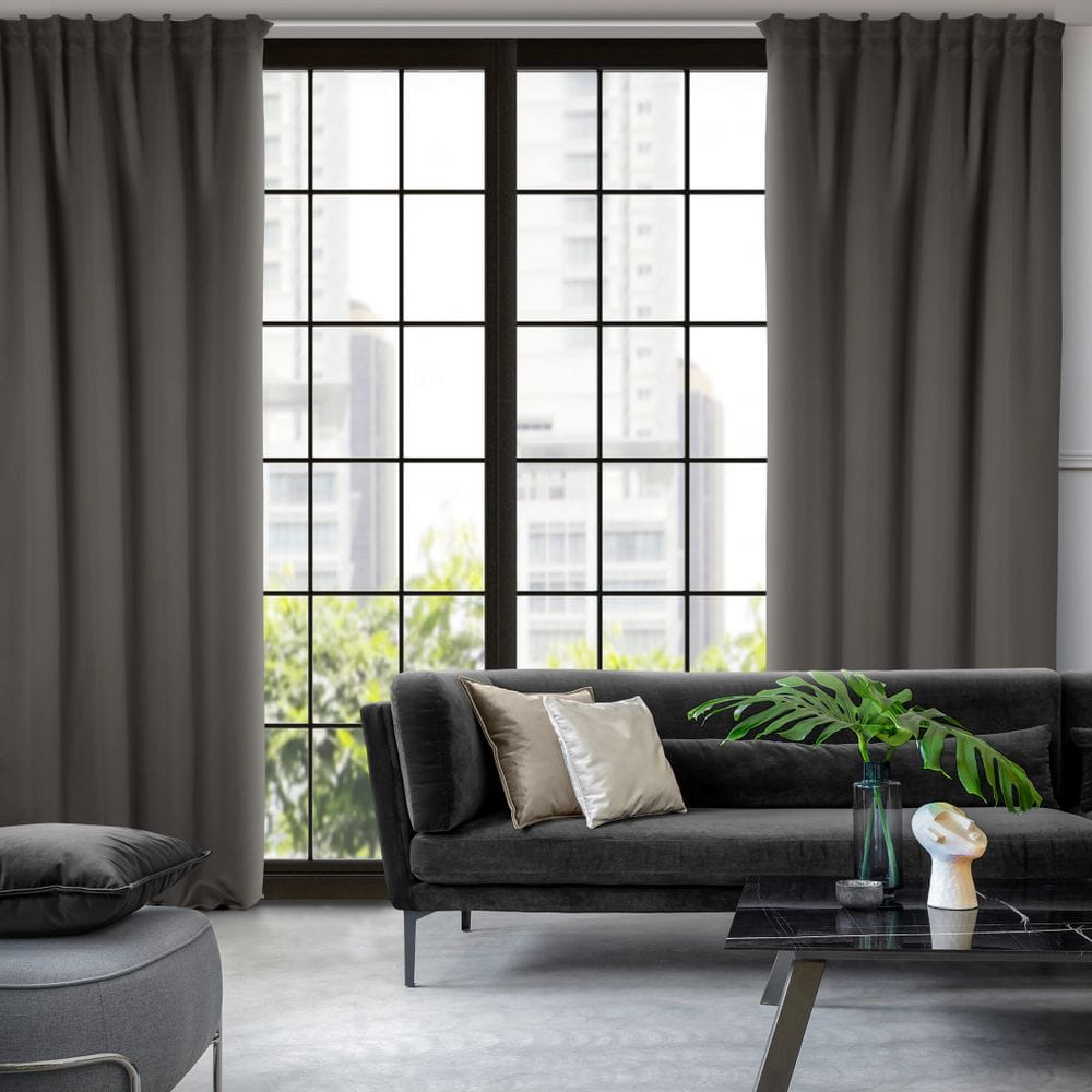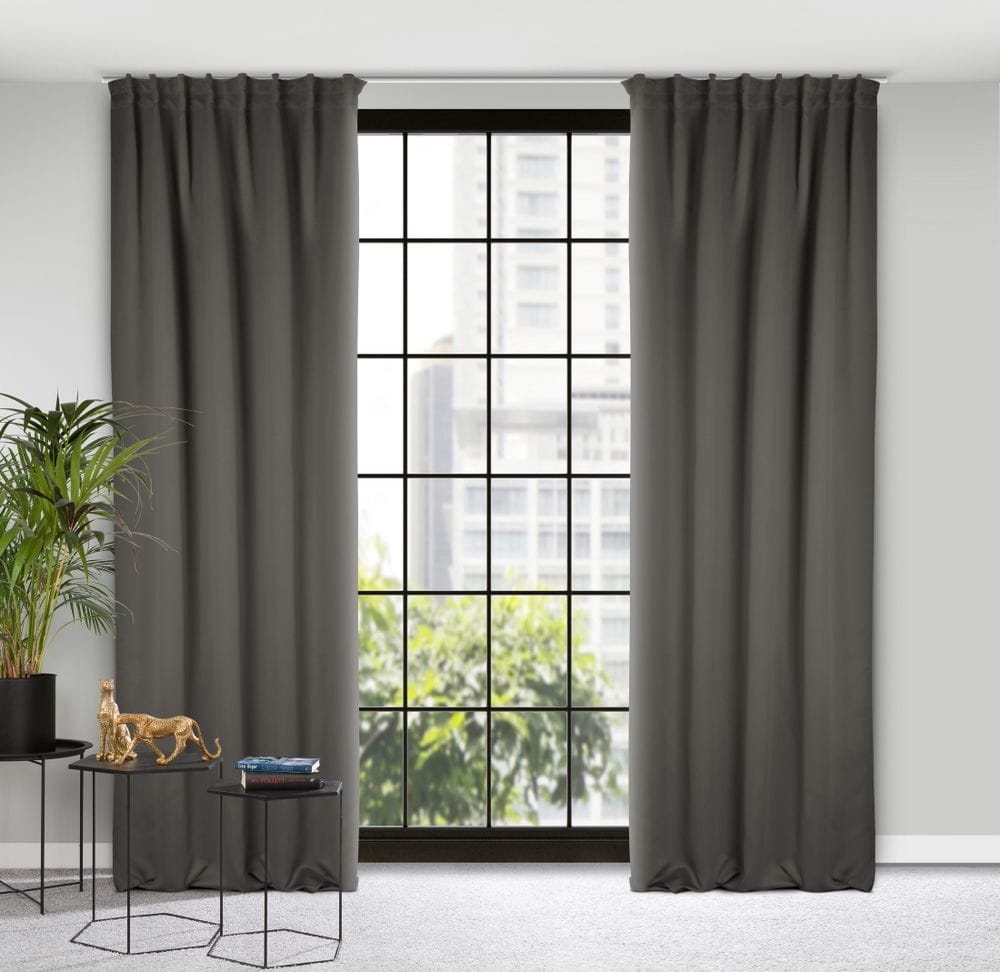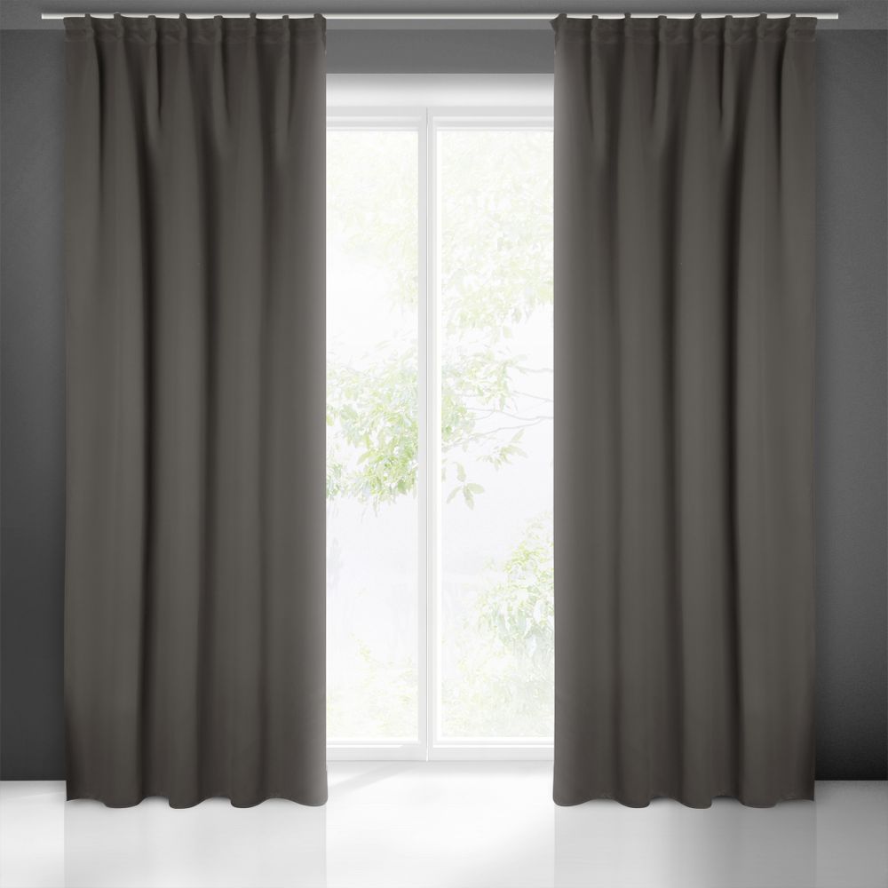 Zasłona zaciemniająca jednokolorowa z taśmą do szyn sufitowych szerokość: 140 cm, długość: 300 cm, kolor: grafitowy, Gramatura: 210 GSM, Skład: 100% poliester