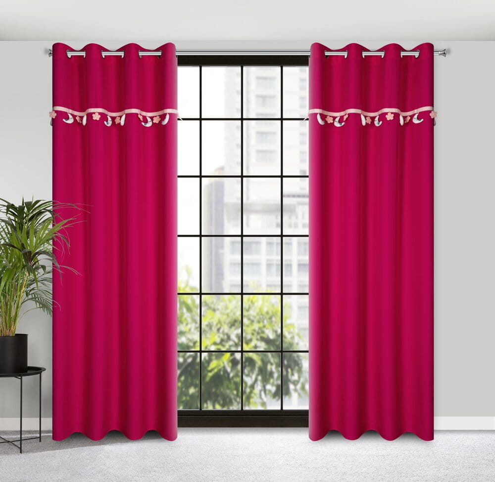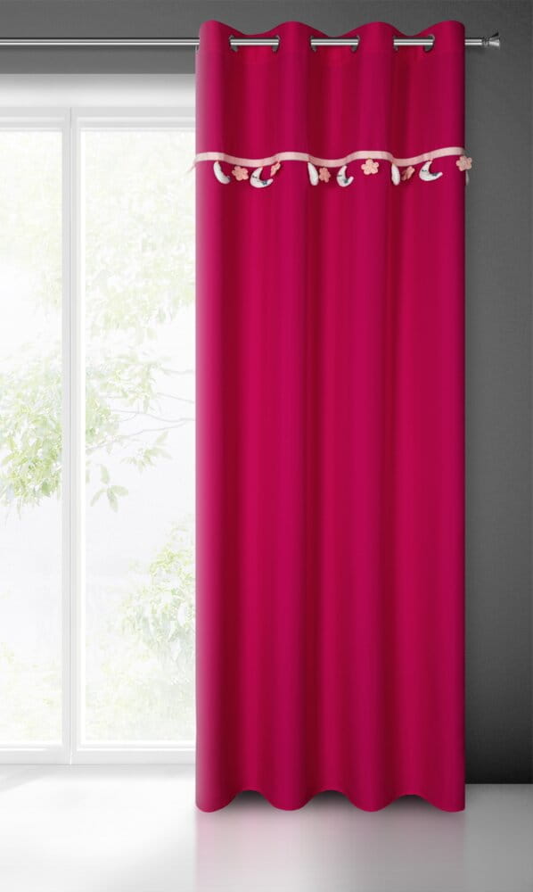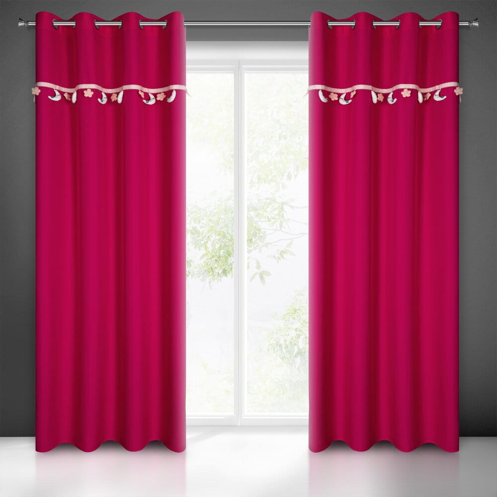 Zasłona gotowa z wszytą taśmą dekoracyjną z motywem dziecięcym szerokość: 140 cm, długość: 250 cm, kolor: amarantowy, Gramatura: 140 GSM, Skład: 100% poliester