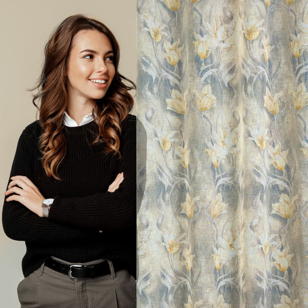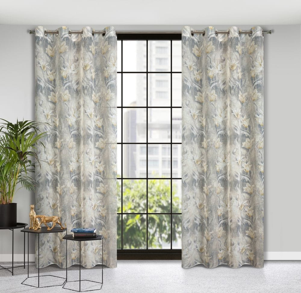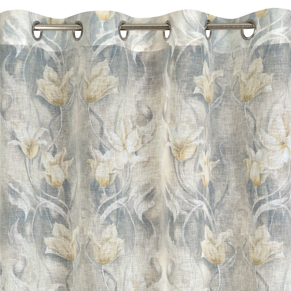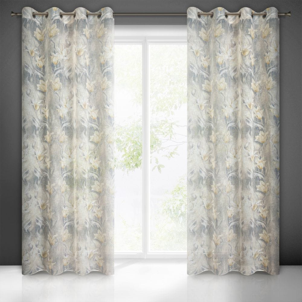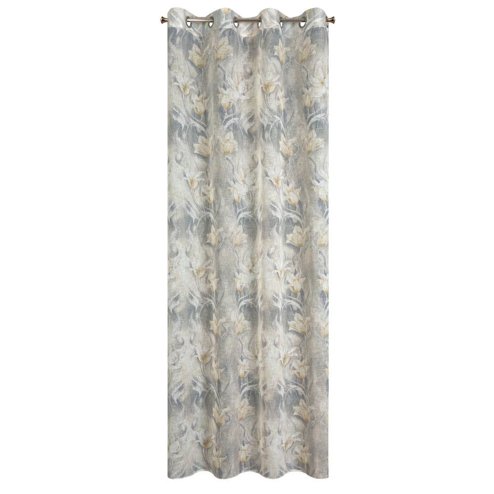 Klasyczna zasłona z tkaniny o strukturze płótna zdobiona pastelowym nadrukiem kwiatów ogrodowych. Średni stopień zaciemnienia. Tkanina łatwa w prasowaniu. szerokość: 140 cm, długość: 250 cm, kolor: biały/popielaty, Gramatura: 130 GSM, Skład: 100% poliester