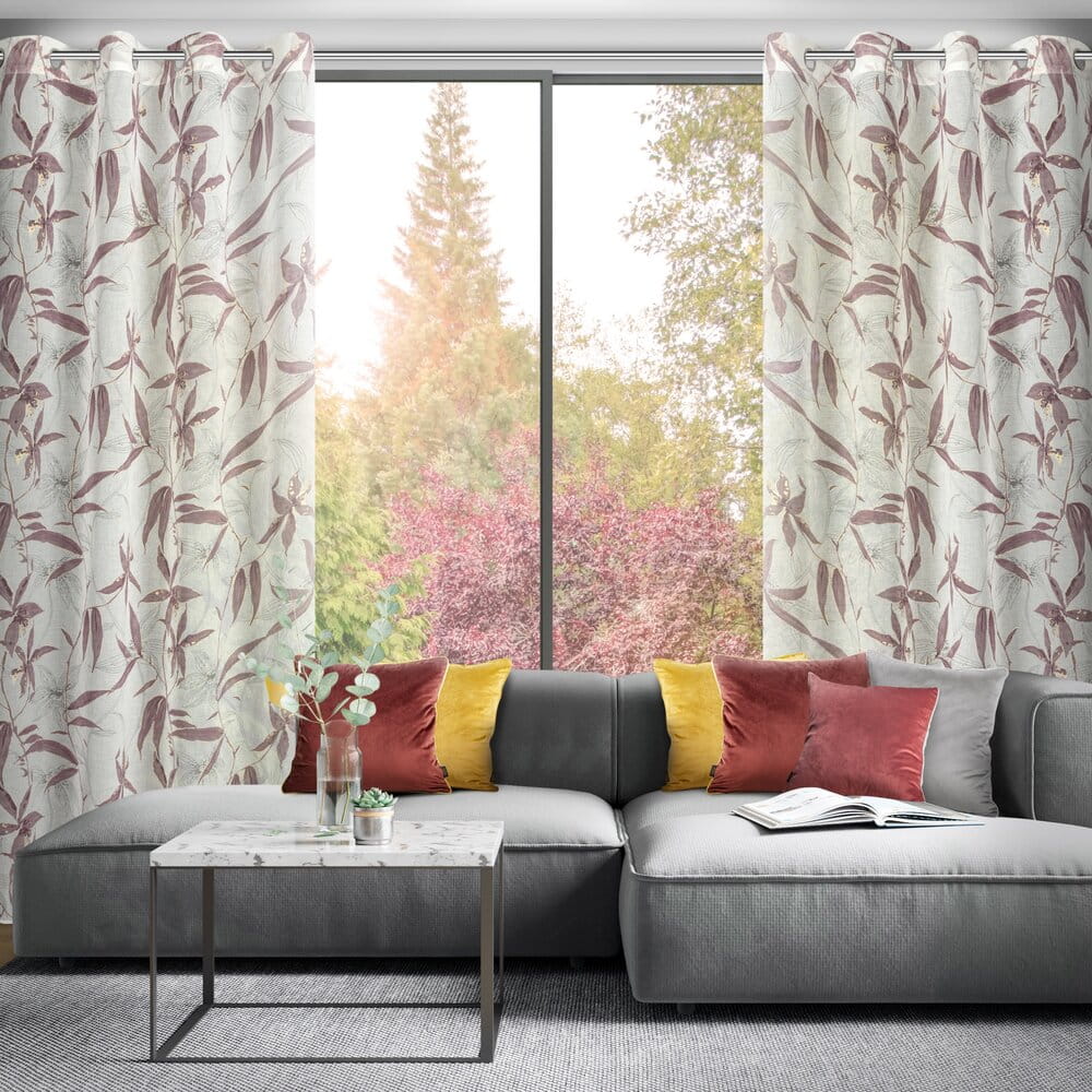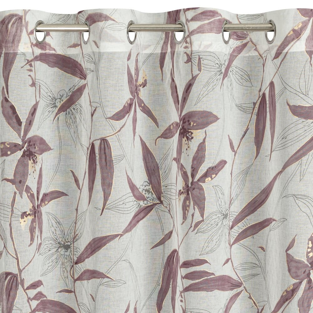 Zasłona gotowa z motywem kwiatowym oraz błyszczącym nadrukiem szerokość: 140 cm, długość: 250 cm, kolor: naturalny, Gramatura: 75 GSM, Skład: 100% poliester