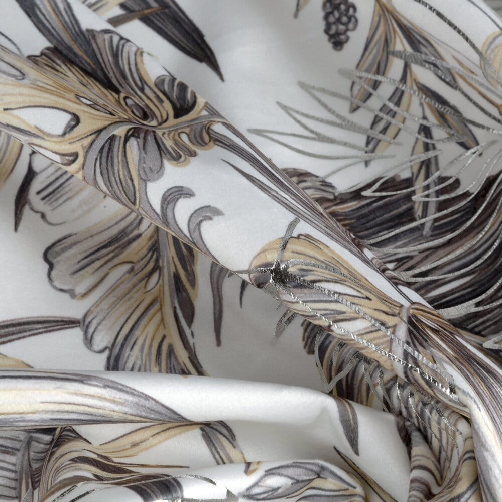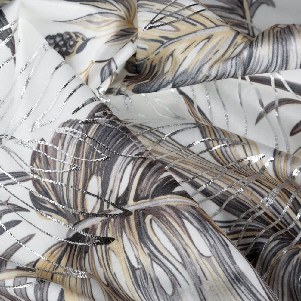 Zasłona welwetowa ze srebrnym nadrukiem szerokość: 140 cm, długość: 270 cm, kolor: biały, Gramatura: 200 GSM, Skład: 100% poliester