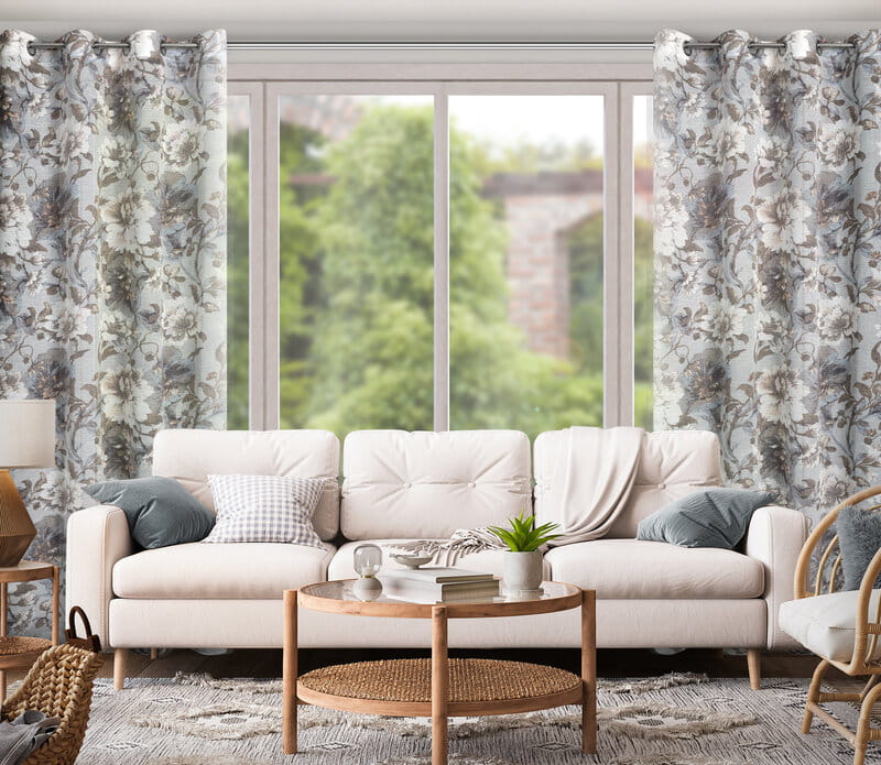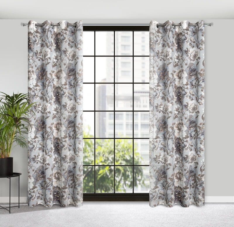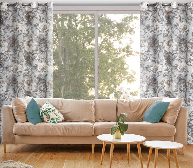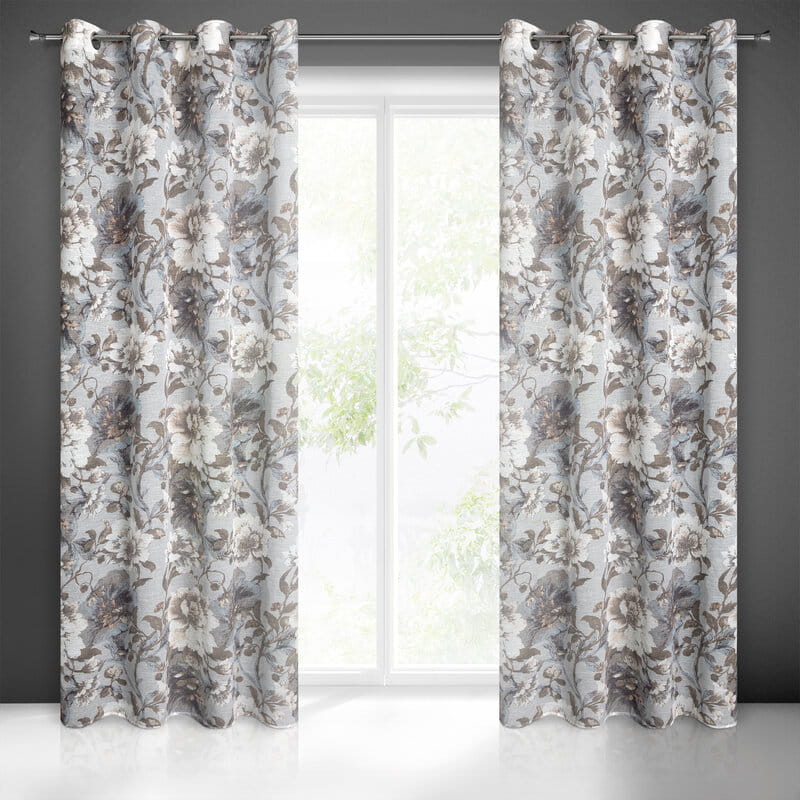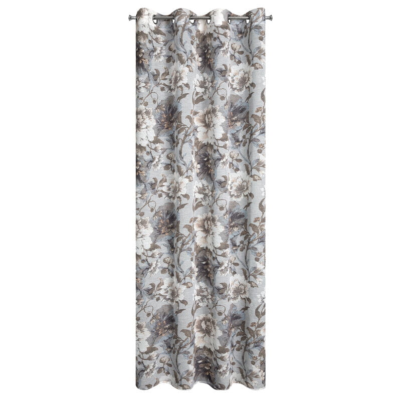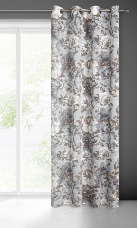 Zasłona w stylu eco z kwiatowym nadrukiem szerokość: 140 cm, długość: 250 cm, kolor: biały, Gramatura: 110 GSM, Skład: 100% poliester