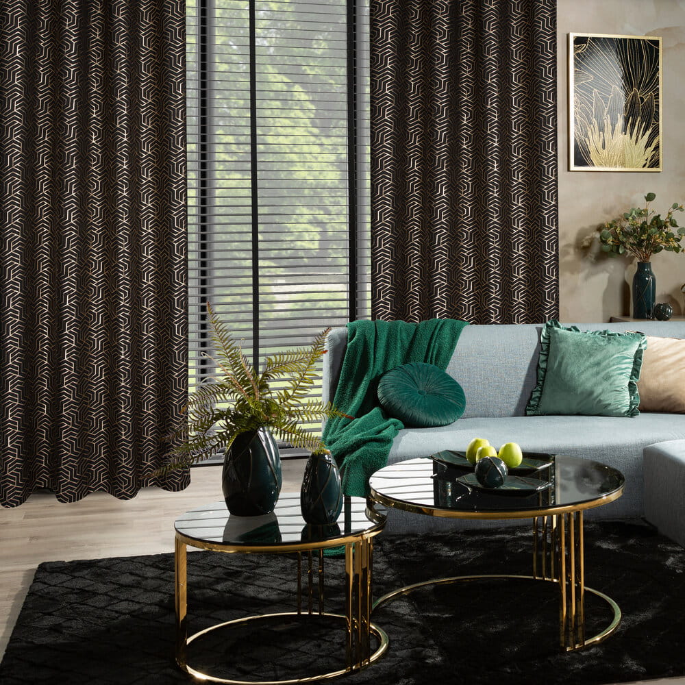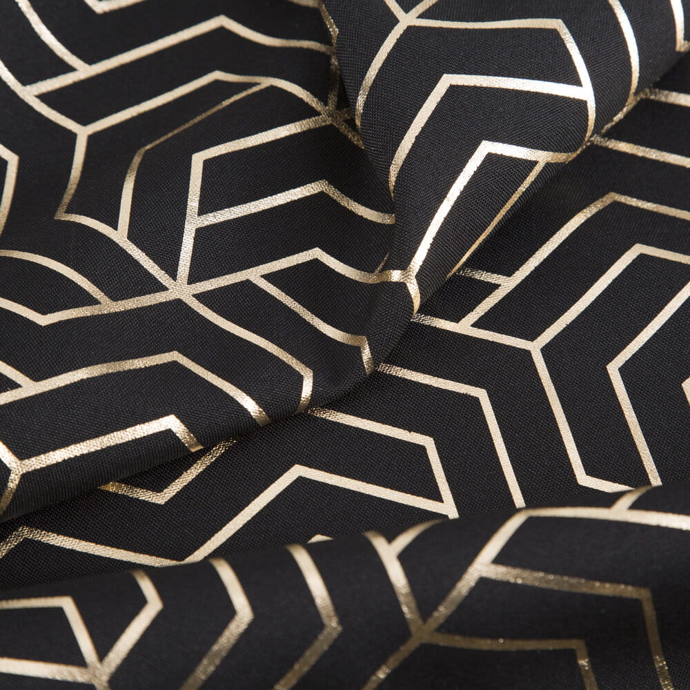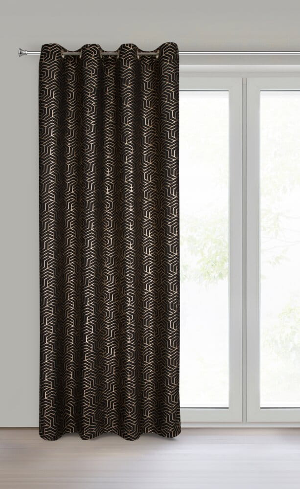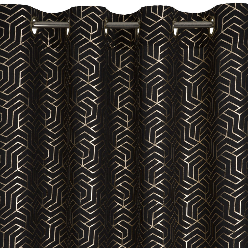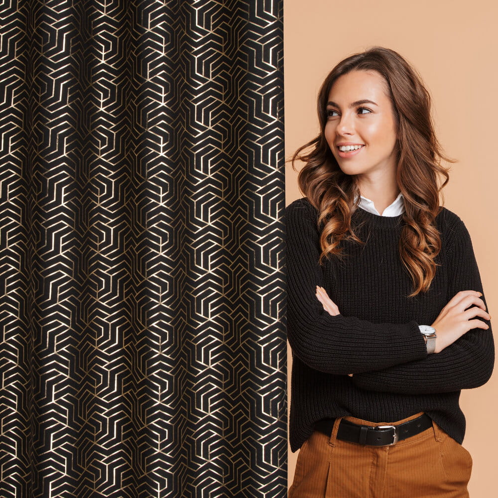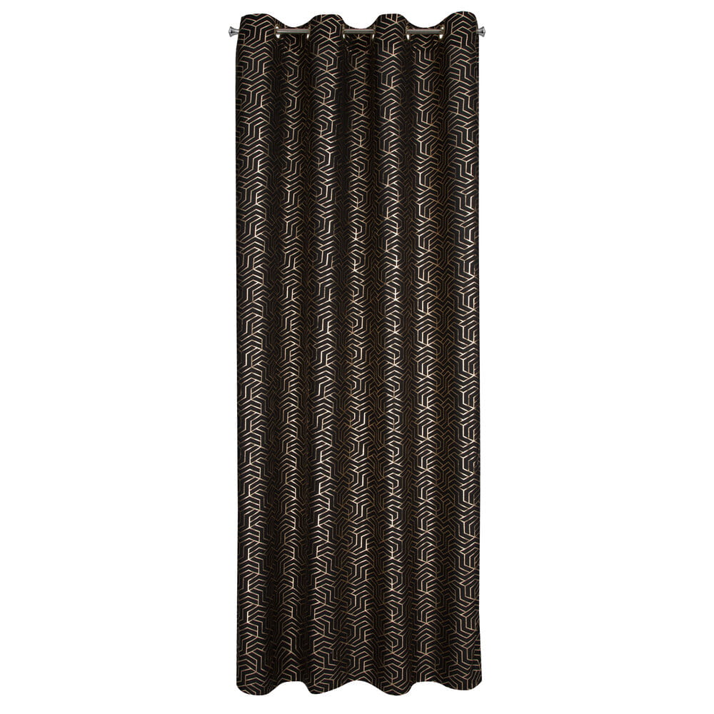 Zasłona gotowa z nadrukiem błyszczącym szerokość: 140 cm, długość: 250 cm, kolor: czarny, Gramatura: 140 GSM, Skład: 100% poliester