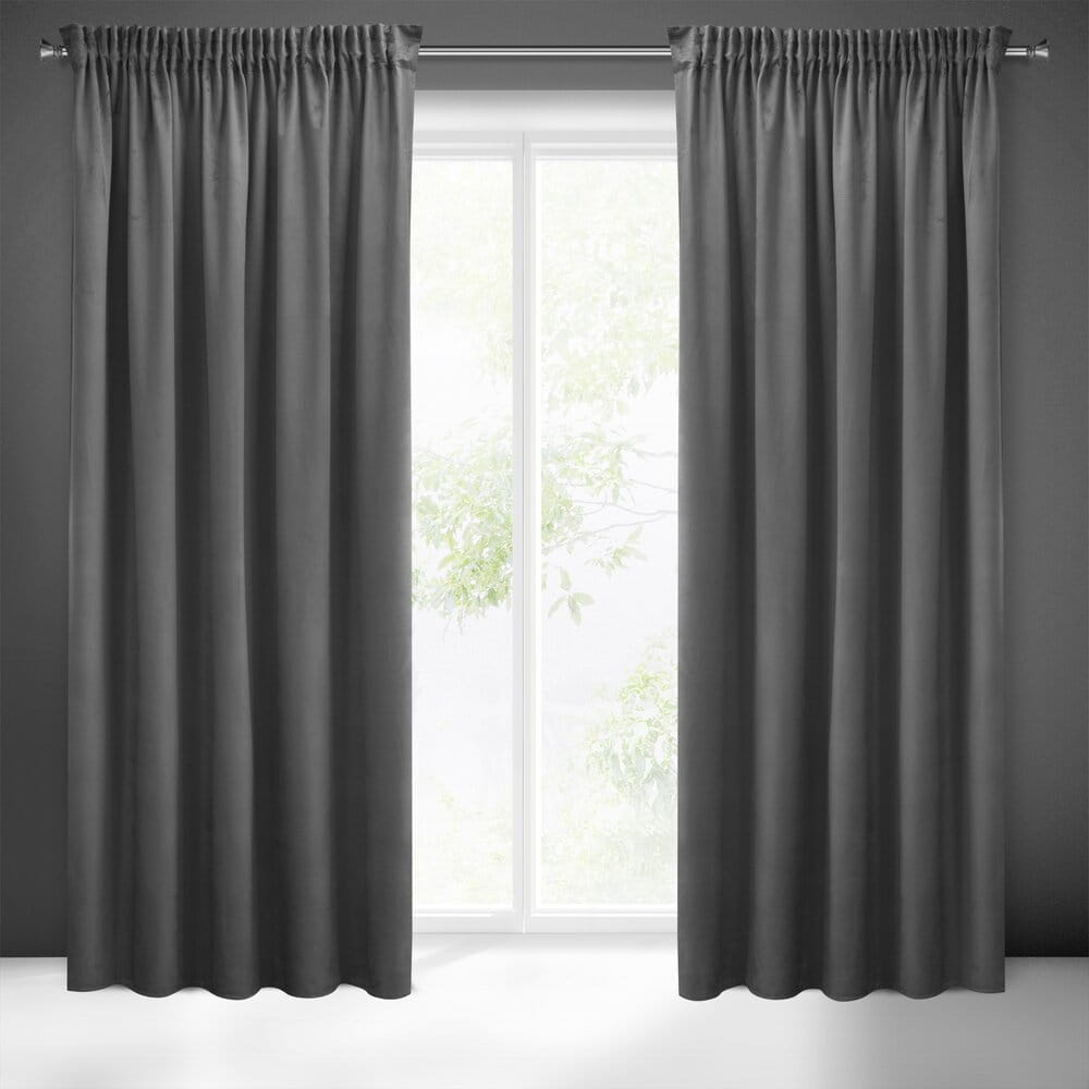 Zasłona welwetowa jednokolorowa z kolekcji pierre cardin szerokość: 140 cm, długość: 270 cm, kolor: stalowy, Skład: 100% poliester