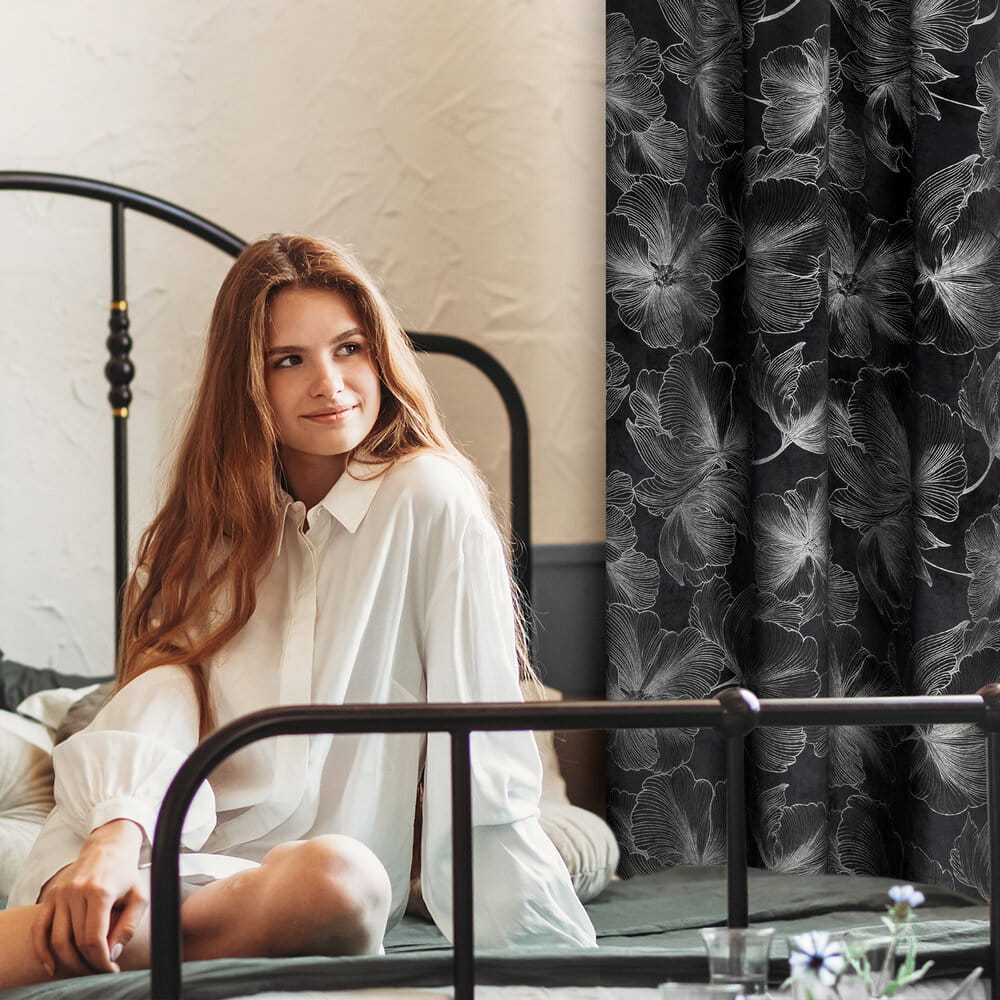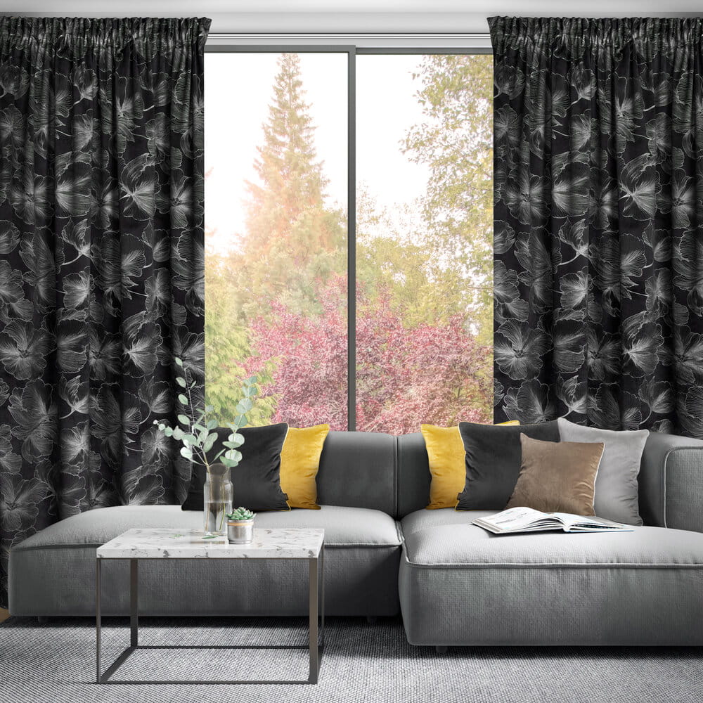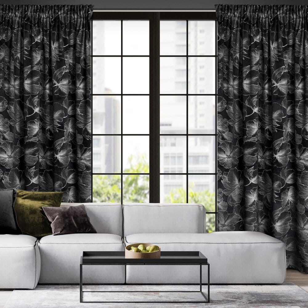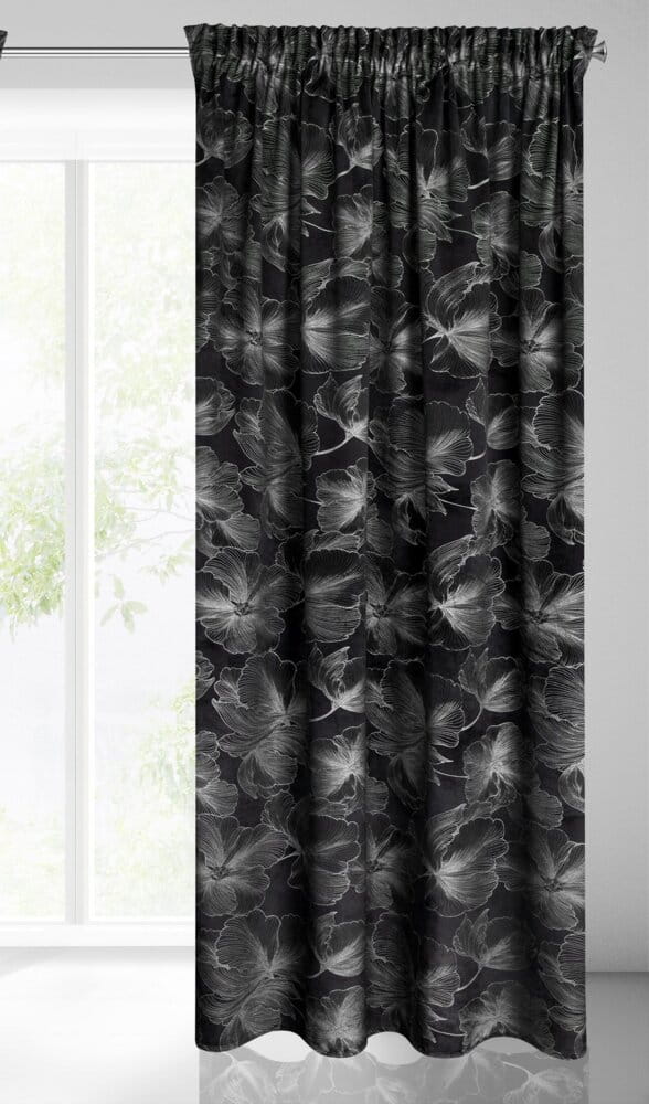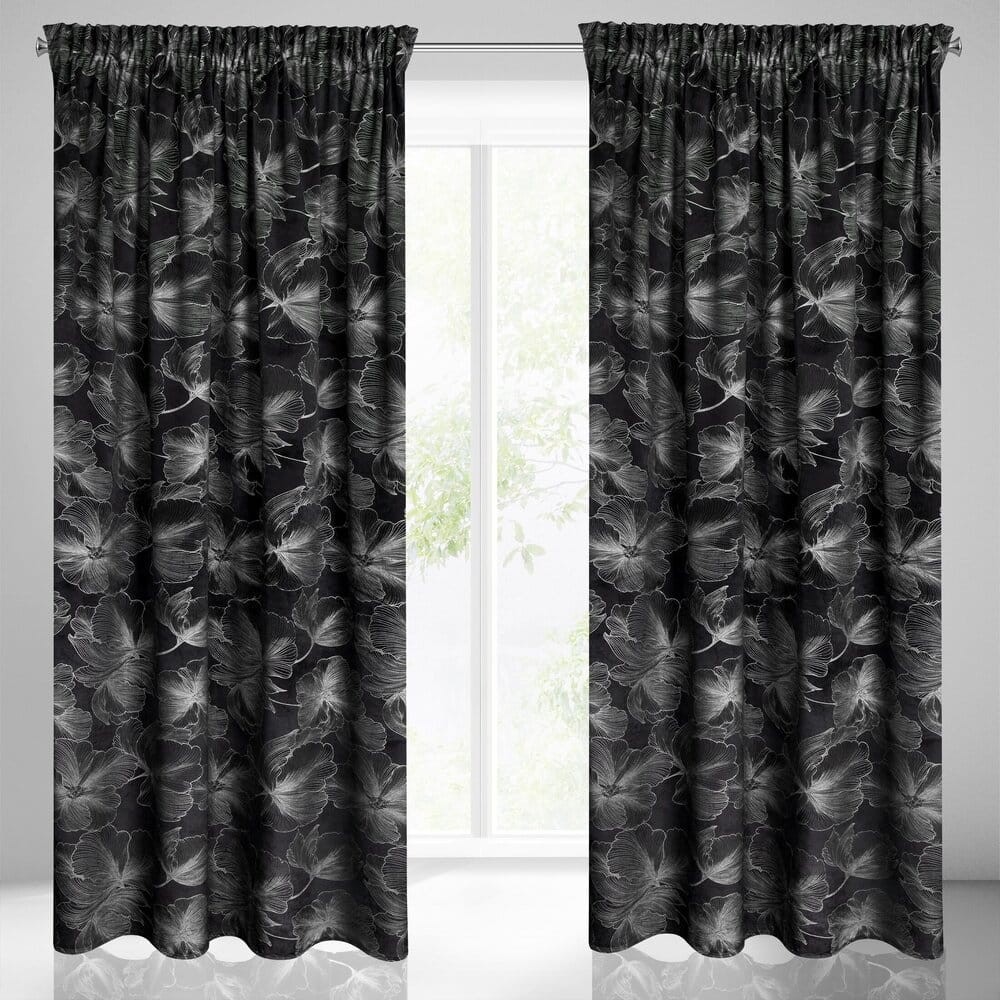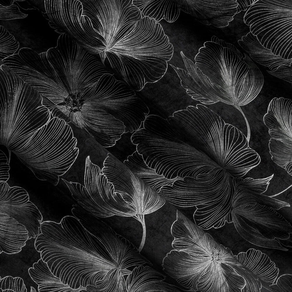 Zasłona welwetowa ze srebrnym nadrukiem szerokość: 140 cm, długość: 300 cm, kolor: czarny, Gramatura: 200 GSM, Skład: 100% poliester
