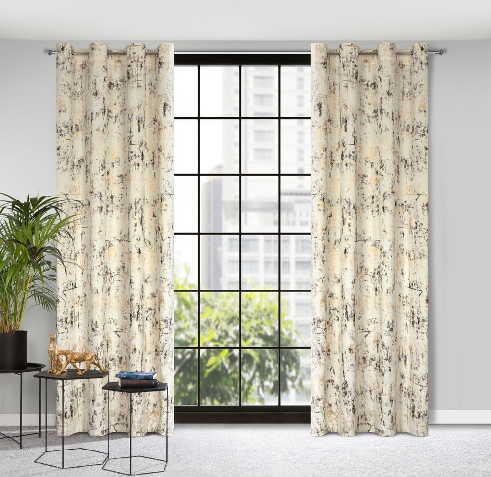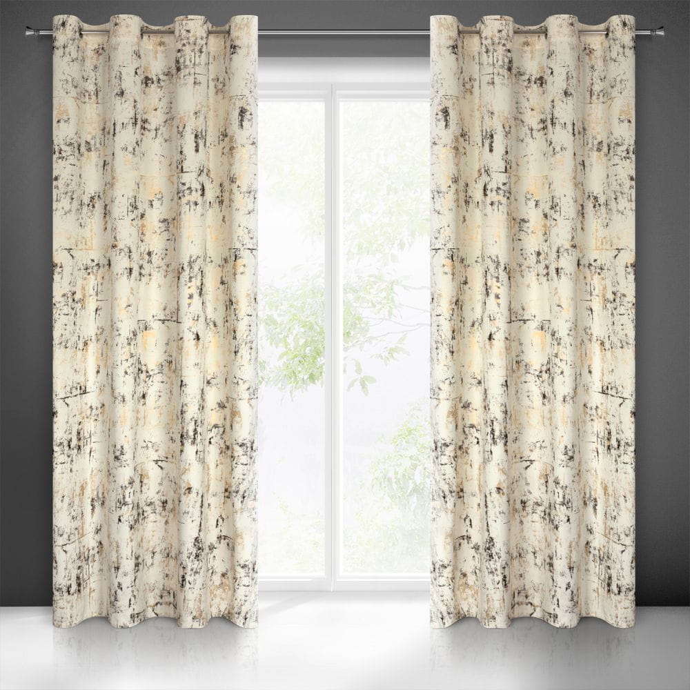 Zasłona welwetowa ze złotym nadrukiem szerokość: 140 cm, długość: 250 cm, kolor: kremowy/złoty, Gramatura: 200 GSM, Skład: 100% poliester