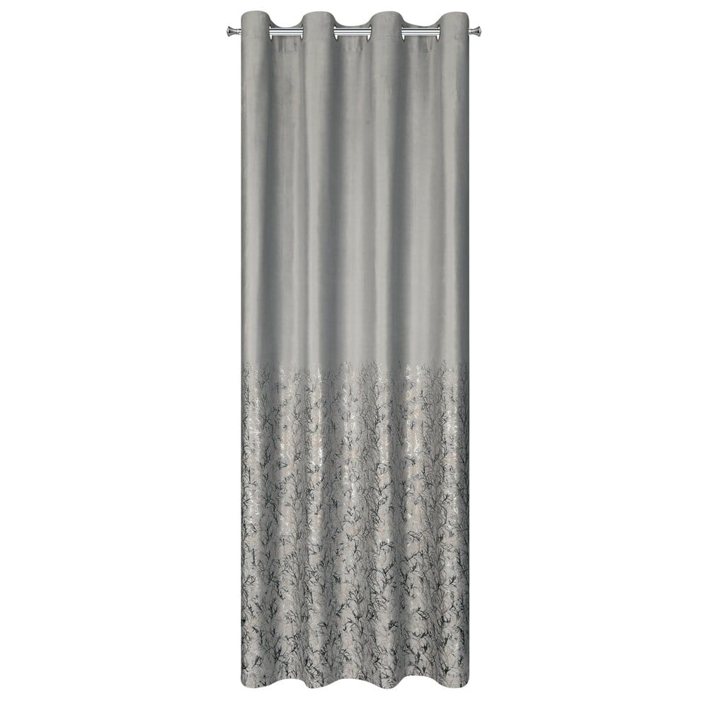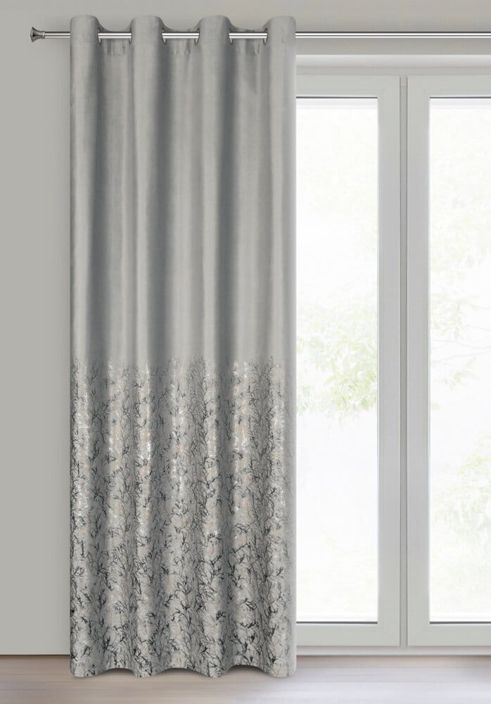 Zasłona welwetowa z metalicznym nadrukiem od dołu szerokość: 140 cm, długość: 250 cm, kolor: srebrny, Gramatura: 200 GSM, Skład: 100% poliester