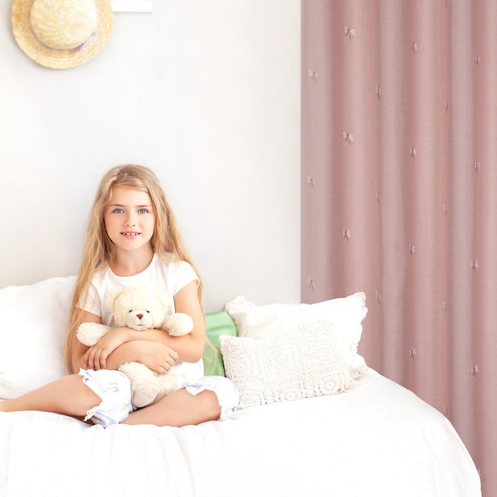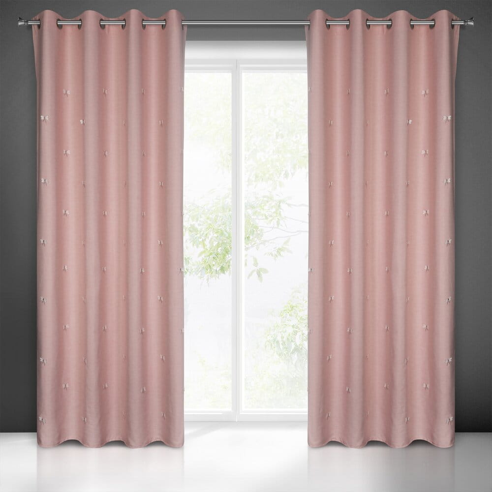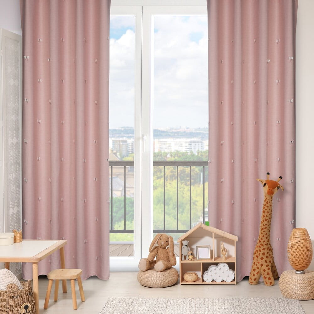 Zasłona gotowa zdobiona haftem w dziecięcy wzór szerokość: 140 cm, długość: 250 cm, kolor: różowy, Skład: 100% poliester