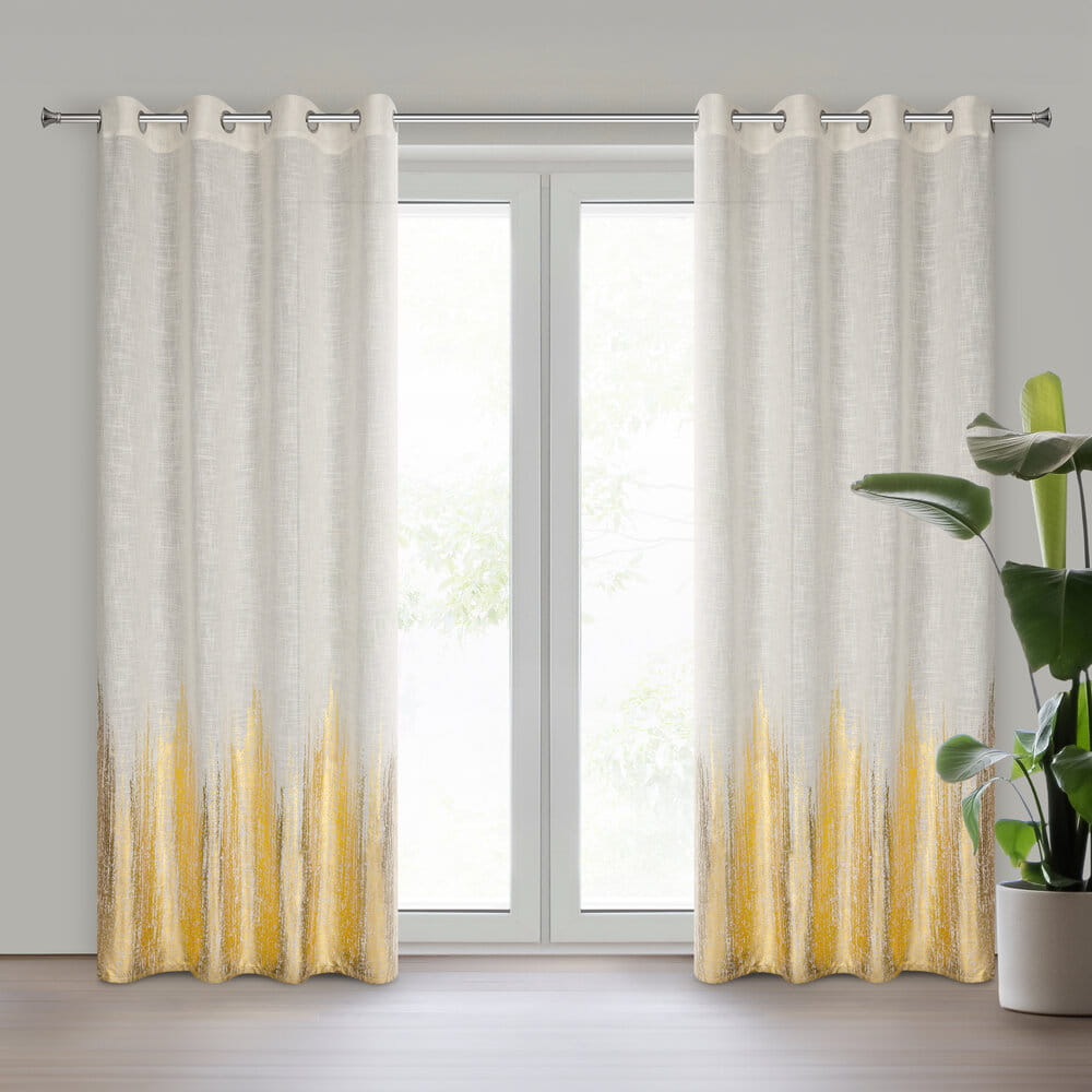 Zasłona gotowa z tkaniny z lnem w stylu eko z błyszczącym nadrukiem szerokość: 135 cm, długość: 250 cm, kolor: naturalny, Skład: 95% poliester, 5% len
