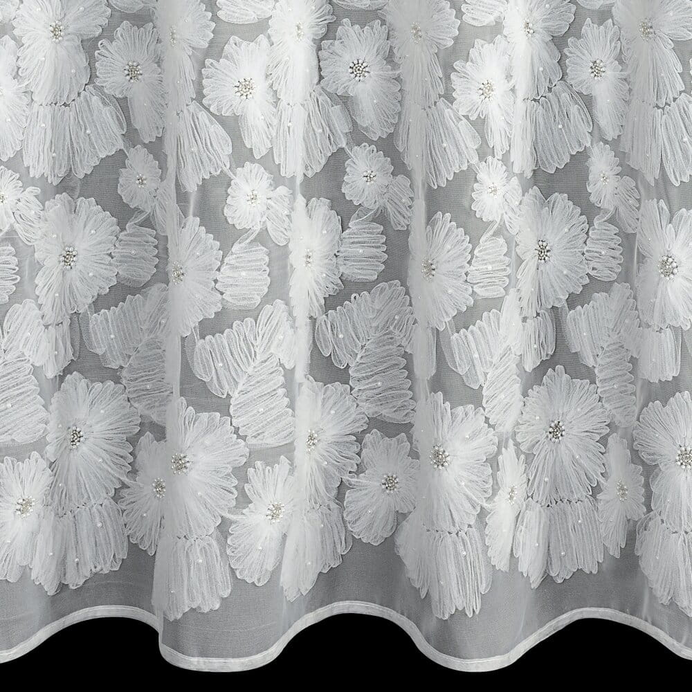 Firana gotowa z aplikacją szerokość: 140 cm, długość: 250 cm, kolor: biały, Gramatura: 50 GSM, Skład: 100% poliester