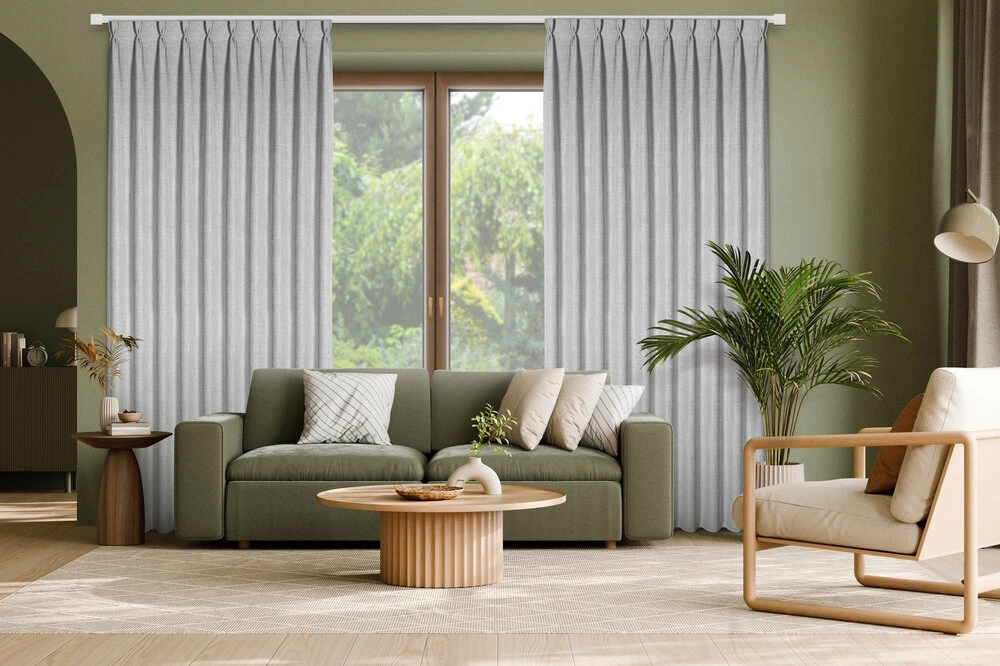 Zasłona gotowa w stylu eco szerokość: 125 cm, długość: 270 cm, kolor: popielaty, Gramatura: 205 GSM, Skład: 100% poliester