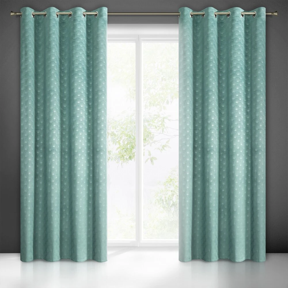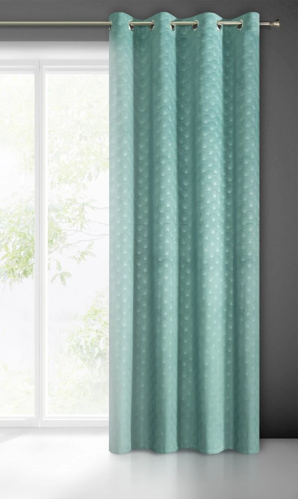 Zasłona welwetowa z efektownym wytłoczeniem szerokość: 140 cm, długość: 250 cm, kolor: turkusowy, Gramatura: 200 GSM, Skład: 100% poliester