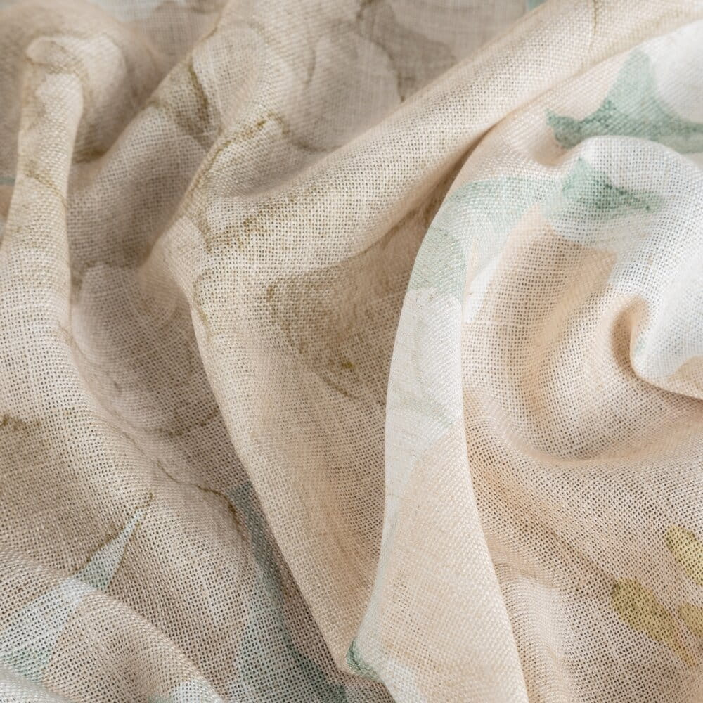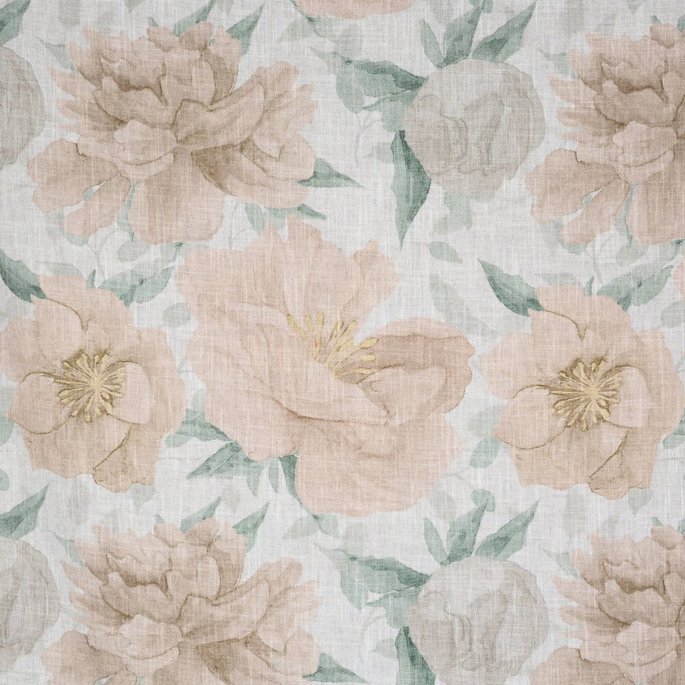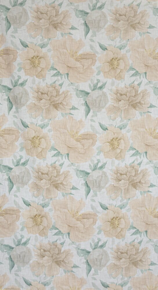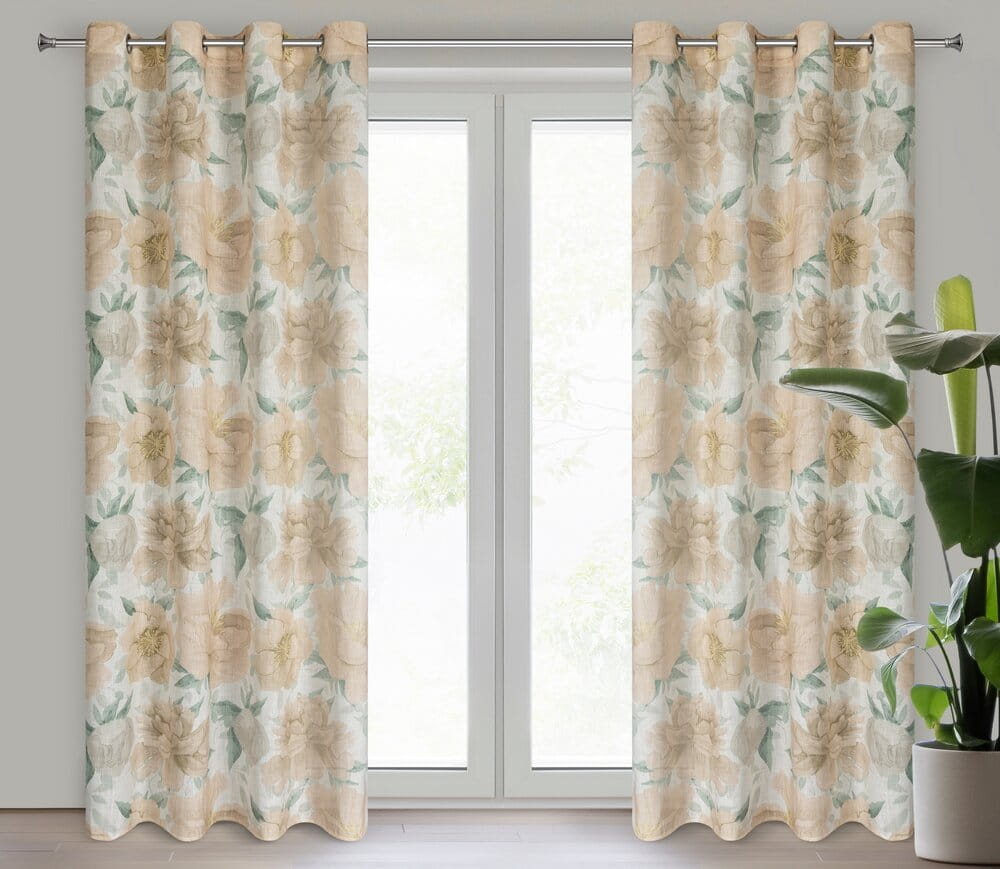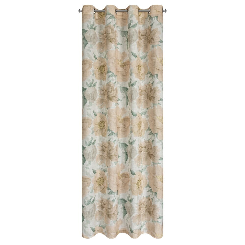 Zasłona gotowa z motywem kwiatów, z domieszką lnu szerokość: 140 cm, długość: 250 cm, kolor: naturalny, Gramatura: 220 GSM, Skład: 15% len, 85% poliester