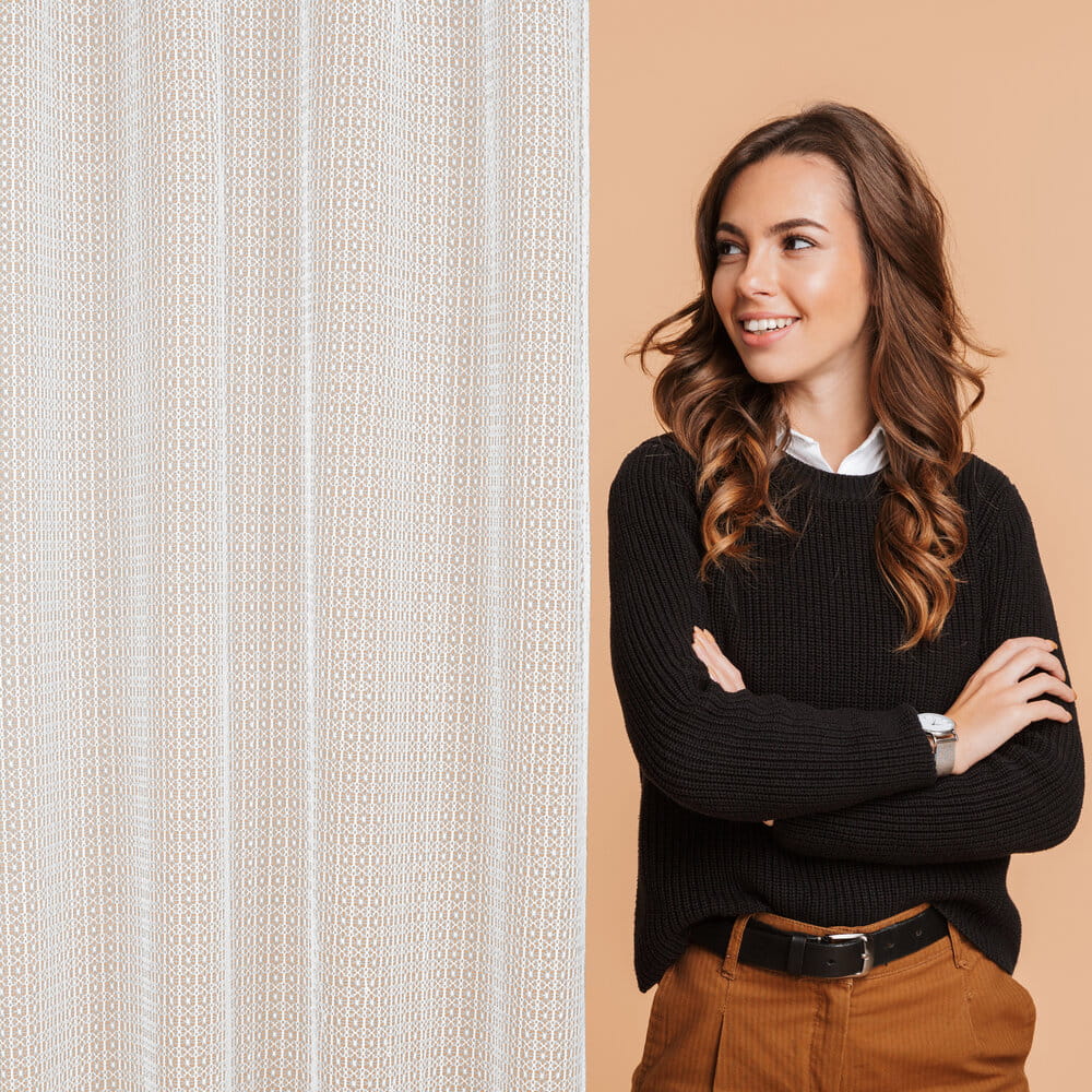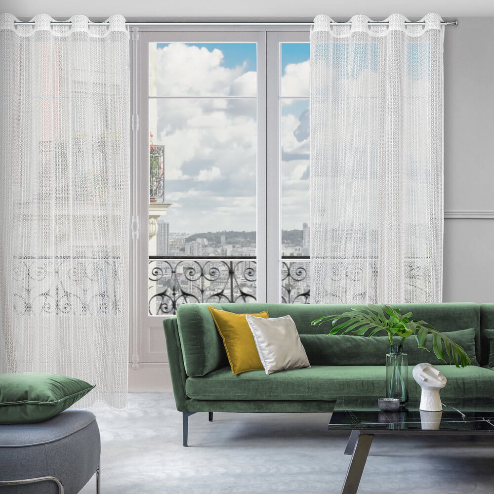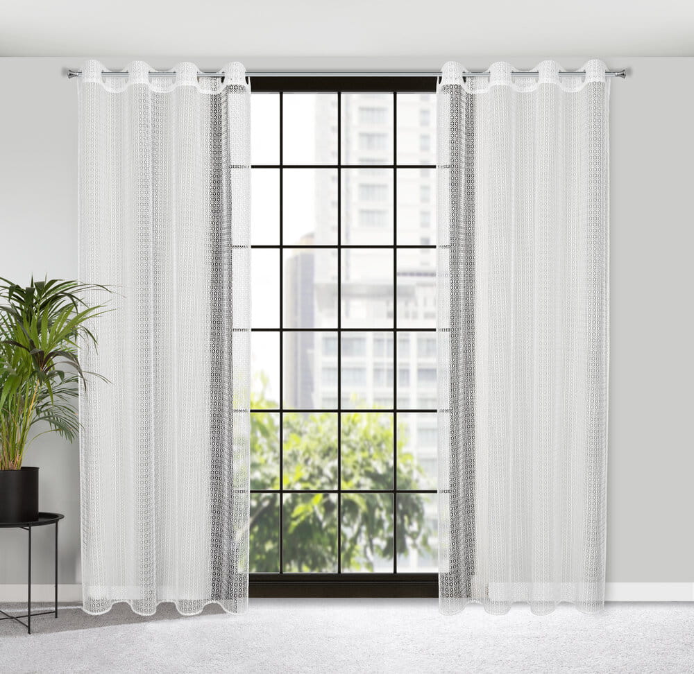 Zasłona gotowa z siatki, w stylu eko szerokość: 140 cm, długość: 250 cm, kolor: biały, Gramatura: 105 GSM, Skład: 100% poliester