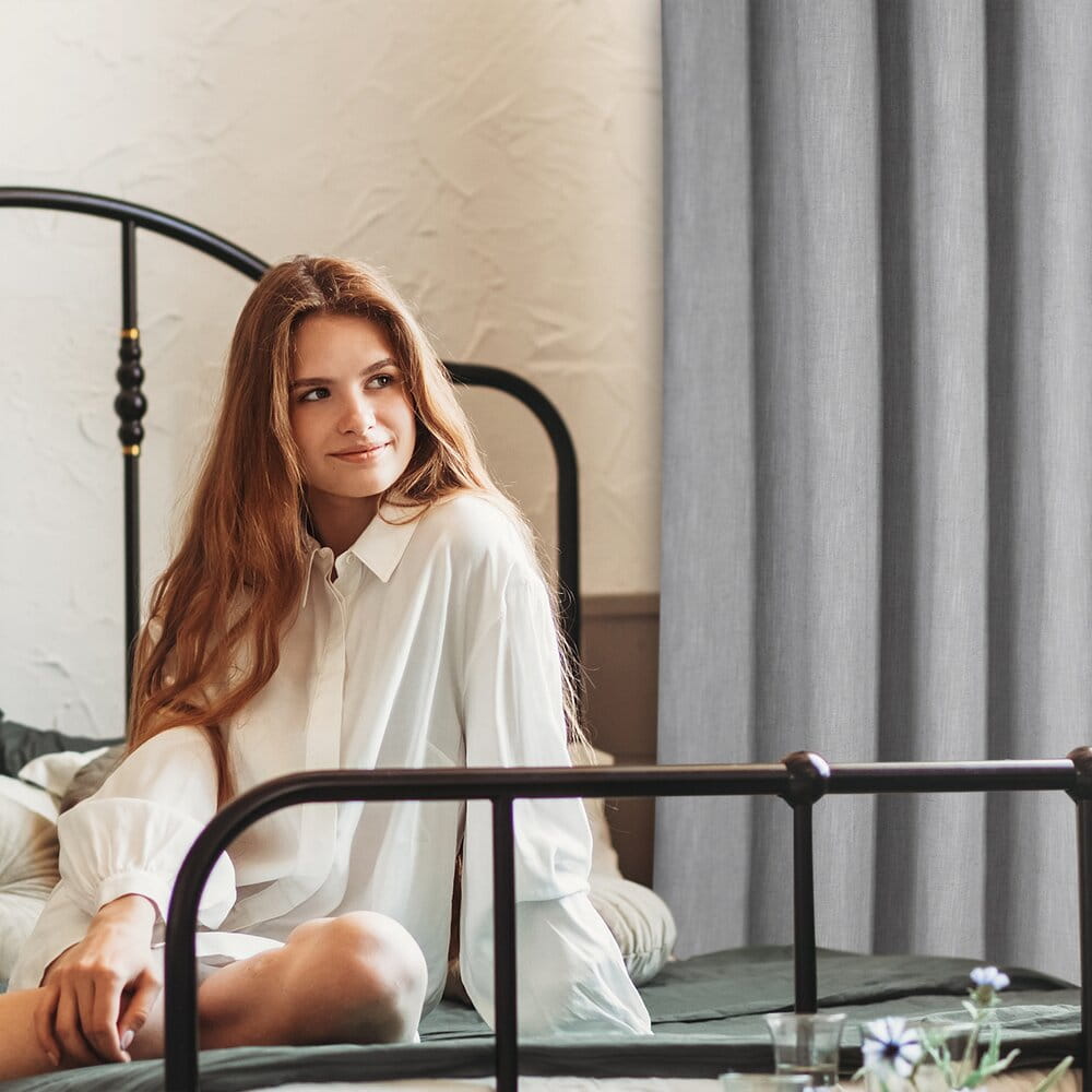 Zasłona gotowa w stylu eko z tkaniny z dodatkiem lnu szerokość: 140 cm, długość: 250 cm, kolor: srebrny, Skład: 95% poliester, 5% len